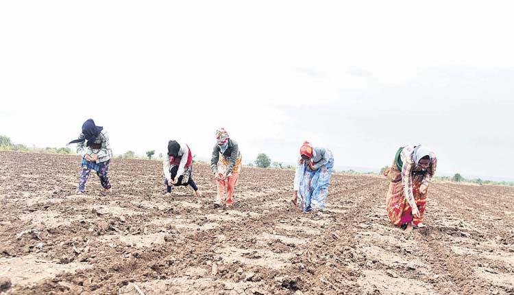 పత్తి విత్తనాలు విత్తుతున్న రైతులు
