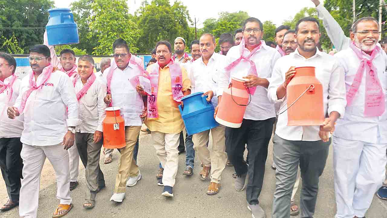 ఆదిలాబాద్ జిల్లా కేంద్రంతోపాటు బోథ్ నియోజకవర్గ కేంద్రంలో జీఎస్టీకి వ్యతిరేకంగా టీఆర్ఎస్ నాయకులు ఆందోళన కార్యక్రమాలు నిర్వహించారు. జిల్లాకేంద్రంలో డీసీసీబీ చైర్మన్ భోజారెడ్డి ఆధ్వర్యంలో ఎమ్మెల్యే క్యాంపు కార్యాలయం నుంచి జగ్జీవన్రామ్ చౌక్ వరకు ర్యాలీ తీశారు. పాలక్యాన్లు పట్టుకొని నినాదాలు చేశారు. పాలల్లో రొట్టెలు వేసుకొని తింటూ నిరసన తెలిపారు. ఈ సందర్భంగా భోజారెడ్డి మాట్లాడుతూ.. బీజేపీ ప్రభుత్వం జీఎస్టీ పేరిట పాలు, పాల ఉత్పత్తులపై విధించడం సిగ్గు చేటన్నారు. సామాన్యులకు కనీసం పాలు కూడా లభించకుండా కేంద్రం కుట్ర చేస్తున్నదని దుయ్యబట్టారు. వెంటనే జీఎస్టీ ఎత్తివేయాలని డిమాండ్ చేశారు.