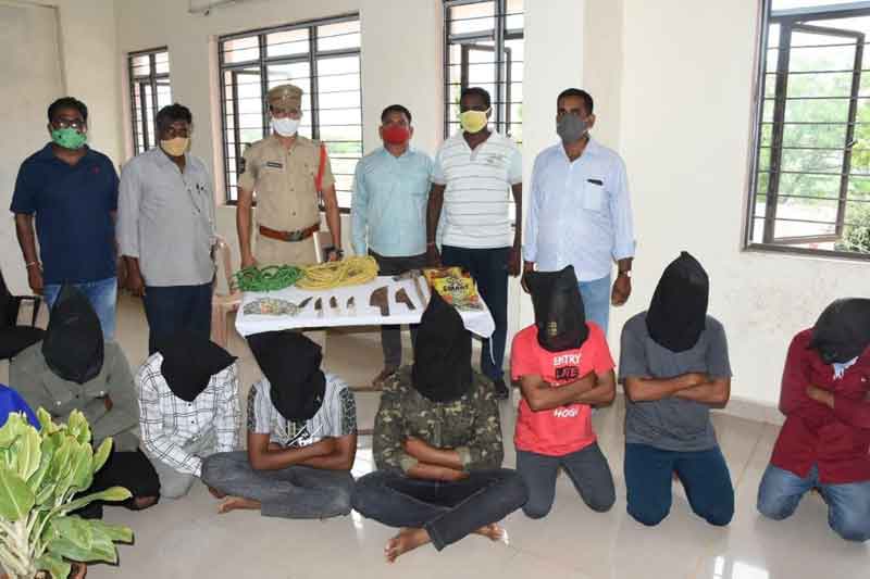 జైపూర్, జూలై 9 : ఇందారం, రామరావుపేట గ్రామాల్లో మేతకు వెళ్లిన ఆవులు, ఎడ్లను అటవీ ప్రాంతంలోకి తీసుకెళ్లి, రాత్రివేళ వాటిని చంపి, గోదావరిఖని, బెల్లంపల్లి, మంచిర్యాల, రామకృష్ణాపూర్, జైపూర్ ప్రాంతాల్లో వన్యప్రాణుల మాంసంగా విక్రయిస్తున్న ముఠాను శుక్రవారం జైపూర్ పోలీసులు అరెస్ట్ చేశారు. ఈ మేరకు బెల్లంపల్లి మండలం దుగ్నెపల్లికి చెందిన కుమ్మరి కల్యాణ్, జాడి సాగర్, మాల గురిజాలకు చెందిన దుగుట వెంకటస్వామి, జైపూర్ మండలం మిట్టపల్లికి చెందిన గద్దల రాజశేఖర్, ఇందారంకు చెందిన మాణుగ రజనీకాంత్, నస్పూర్ మండలం నస్పూర్గేట్కు చెందిన మహమ్మద్ షాకీర్, నస్పూర్కు చెందిన డీజే ఆపరేటర్ మేరడిగొండ అజయ్, గోదావరిఖనికి చెందిన జీలుమోడి కార్తీక్ను అదుపులోకి తీసుకున్నారు. వారి నుంచి రెండు ఆటోలు, ఆయుధాలు, నగదు స్వాధీనం చేసుకున్నారు.