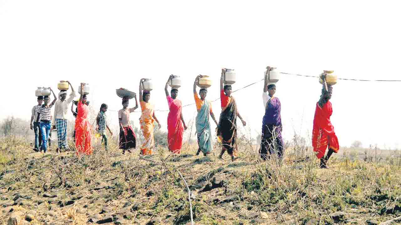 చిత్రంలో.. నల్లా నీరు పట్టుకుంటున్న ఈ మహిళది పార గ్రామం. మిషన్ భగీరథ పుణ్యమాని ఎంచక్కా ఇంటి వద్దే నల్లా నీళ్లు పట్టుకుంటున్నది. డ్రమ్ములో నీళ్లునిం పుకొని ఎప్పటిలాగే వ్యవసాయ పనులకు వెళ్తున్నది. నీటి కోసం కాలినడకన కిలో మీటర్ దూరం వెళ్లాల్సిన బాధ తప్పింది. సీఎం కేసీఆర్ ప్రవేశపెట్టిన మిషన్ భగీరథ ద్వారా స్వచ్ఛజలం ఇప్పుడు ఇంటింటికీ అందుతోంది. శుద్ధజలం తాగడం వల్ల రోగాలు దరిచేరడం లేదు. సీఎం కేసీఆర్ ప్రవేశపెట్టిన మిషన్ భగీరథ మా బాధలు తీర్చిందని, రోగాలు రాకుండా చేసిందని గిరిజనులు సంబుర పడుతున్నారు.