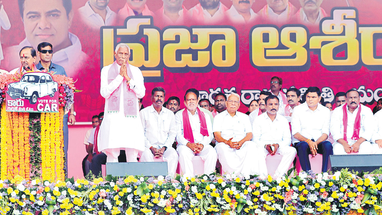 సభకు వచ్చిన వారి ఉత్సాహాన్ని చూసి సీఎం కేసీఆర్ మరింత జోష్తో మాట్లాడారు. ‘తలాపున పారుతుంది గోదారి.. మన చేను, మన చెలక ఎడారి.. ఎల్లమ్మ కూడ బెడితే మల్లమ్మ మాయం చేసింది అన్నట్లు..’ అని ప్రసంగంలో సీఎం కేసీఆర్ మాట్లాడినప్పుడు జనం నుంచి అద్భుతమైన స్పందన వచ్చింది. సభ విజయవంతం కావడంతో శ్రేణుల్లో నూతనోత్తేజం కనిపించింది. ఎమ్మెల్యే అభ్యర్థి దివాకర్రావు, ఎంపీ వెంకటేశ్నేతకాని, నియోజకవర్గ ఇన్చార్జి ప్రభుత్వ విప్ ఎమ్మెల్సీ భానుప్రసాద్ పాల్గొన్నారు.
