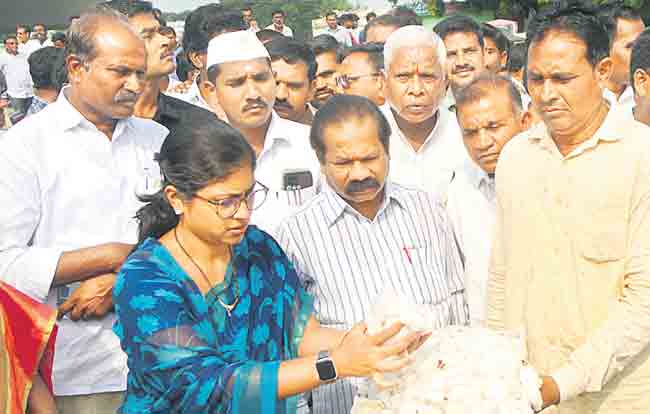 పత్తిని పరిశీలిస్తున్న ఆదిలాబాద్ కలెక్టర్ సిక్తా పట్నాయక్