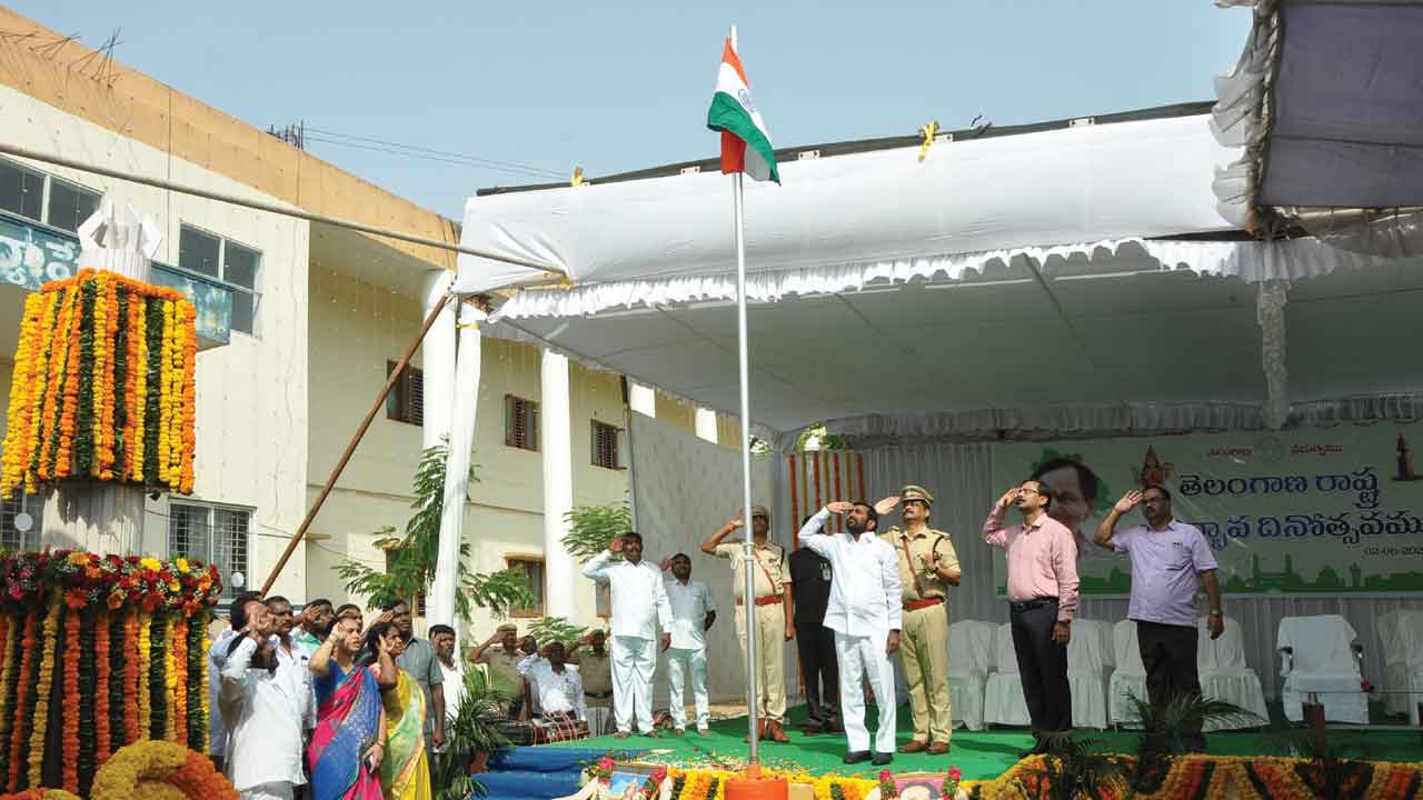 తెలంగాణ ఆవిర్భావ దినోత్సవాన్ని పురస్కరించుకొని గురువారం కలెక్టరేట్ ఎదుట జాతీయ జెండాను ఆవిష్కరించారు. అంతకుముందు రాజ్యసభ సభ్యుడు బడుగుల లింగయ్యయాదవ్, జడ్పీ చైర్పర్సన్ గుజ్జ దీపికాయుగంధర్, జిల్లా కలెక్టర్ వినయ్కృష్ణారెడ్డి, ఎస్పీ రాజేంద్రప్రసాద్, అదనపు కలెక్టర్లు ఎస్.మోహన్రావు, పాటిల్ హేమంత్ కేశవ్తో కలిసి అమరవీరుల స్తూపం వద్ద నివాళులర్పించారు. ఈ సందర్భంగా జిల్లా పురోగతిపై వివరించారు.