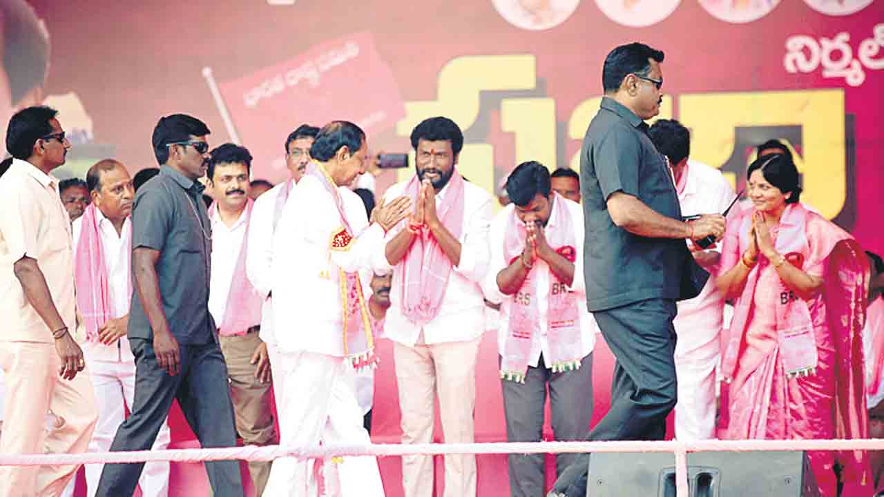 నిర్మల్, నవంబర్ 2(నమస్తే తెలంగాణ) : నిర్మల్ జిల్లా కేంద్రంలో గురువారం నిర్వహించిన బీఆర్ఎస్ ప్రజా ఆశీర్వాద సభ జన ప్రభంజనాన్ని తలపించింది. ముఖ్యమంత్రి కేసీఆర్ను చూసేందుకు.. కారు గుర్తుకు మద్దతు ప్రకటించేందుకు నిర్మల్, ఖానాపూర్, ముథోల్ నియోజకవర్గాల నుంచి వేలాదిగా తరలిరాగా.. సభా ప్రాంగణం కిక్కిరిసిపోయింది. నిర్మల్ నియోజకవర్గ బీఆర్ఎస్ అభ్యర్థి, మంత్రి ఇంద్రకరణ్రెడ్డి, ఆ పార్టీ శ్రేణులు ఆశించిన దానికంటే రెట్టింపు ఉత్సాహంతో 50 వేలకు పైగా జనం పోటెత్తడంతో పట్టణం గులాబీ వనాన్ని తలపించింది.