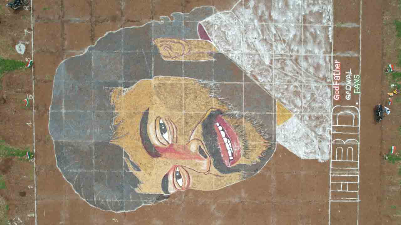 Chiranjeevi | గద్వాల జిల్లా మెగా ఫ్యాన్స్ చిరంజీవిపై అభిమానాన్ని వినూత్నంగా చాటుకున్నారు. ఆగస్టు 22న చిరు పుట్టినరోజు సందర్భంగా గద్వాల జిల్లాలో పెద్ద ఎత్తున చిరంజీవి జన్మదిన సంబురాలు మొదలయ్యాయి. గద్వాల జిల్లా పట్టణ అధ్యక్షుడు బోయ జమ్మన్న గారి అధ్వరంలో మూడు రోజుల ముందే చిరు బర్త్డేను సెలబ్రేట్ చేసుకున్నారు. ఈ నేపథ్యంలో గద్వాల పట్టణంలోని రాయచూరు రోడ్డు నోబుల్ హైస్కూల్ సమీపంలో 30 క్వింటాళ్ల ఉప్పు, లవంగాలతో 250 ఫీట్లు అడ్డం.. 400 ఫీట్లు పొడవుతో చిరంజీవి చిత్రాన్ని గీసి మెగా అభిమానాన్ని చాటుకున్నారు.