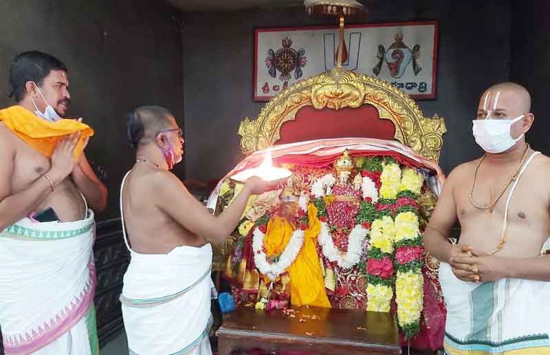 యాదాద్రి, జనవరి11 : యాదాద్రి శ్రీలక్ష్మీసమేతుడైన నారసింహ స్వామి ఆలయంలో మంగళవారం ధనుర్మాస ఉత్సవాల్లో భాగంగా ఆండాళ్ అమ్మవారికి నిరాటోత్సవం అత్యంత వైభవంగా నిర్వహించారు. బాలాలయంలోని కల్యాణమండపంలో అమ్మవారిని దివ్యమనోహరంగా అలంకరించి వేడుకలు జరిపారు. గోదాదేవికి మహిళా భక్తులు మంగళహారతులతో నీరాజనాలు పలికారు. స్వామి, అమ్మవారు మంగళస్నానం ఆచరిస్తారని, భోగి పండుగ సందర్భంగా గోదాదేవి కల్యాణం జరుగబోతున్న నేపథ్యంలో ఈ నిరాటోత్సవాలు నిర్వహించినట్లు ఆలయ అర్చకుడు మోహనాచార్యులు తెలిపారు. ఆలయ అర్చక బృందం వేదమంత్రాలను పటిస్తూ తిరుప్పావై పూజలు చేశారు. నిరాటోత్సవం రెండో రోజులో భాగంగా 27వ విశేష కూడారై పాశురాలను పఠించారు. ఇందులో భాగంగా అమ్మవారికి పాయసం నివేదించారు.