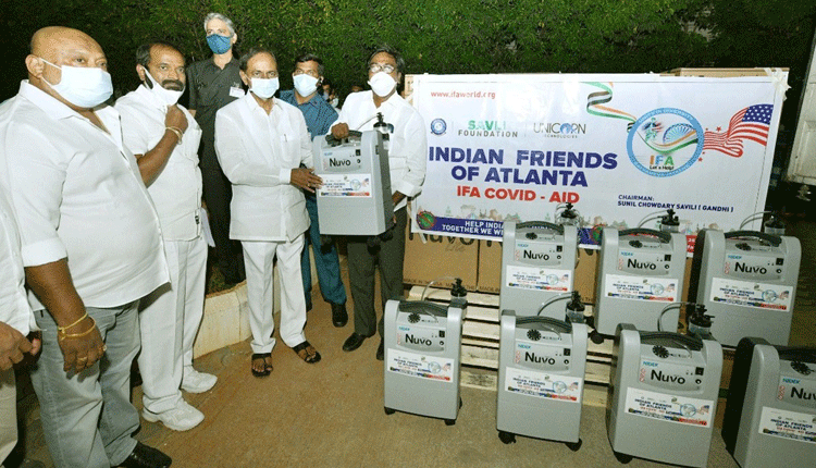 ఇండియన్ ఫ్రెండ్స్ ఆఫ్ అట్లాంటా, పువ్వాడ ఫౌండేషన్ సంయుక్తంగా సమకూర్చిన రూ.2.5 కోట్ల విలువైన 250 ఆక్సీజన్ కాన్సన్ట్రేటర్లను మంత్రి అజయ్కుమార్ ఆదివారం హైదరాబాద్లోని ప్రగతిభవన్లో ముఖ్యమంత్రి కేసీఆర్కు అందించారు. వాటిని ఆవిష్కరించిన అనంతరం అజయ్ను సీఎం అభినందించారు. ఈ ఆక్సిజన్ కాన్సన్ట్రేటర్లను ఉమ్మడి ఖమ్మం జిల్లా ప్రభుత్వ ఆసుపత్రుల్లోని పేదల కోసం వినియోగించనున్నట్లు మంత్రి తెలిపారు. అమెరికా నుంచి ఈ కొత్త కాన్సన్ట్రేటర్లను దిగుమతి చేసేందుకు సునీల్ చావలి సహకరించినట్లు మంత్రి తెలిపారు.