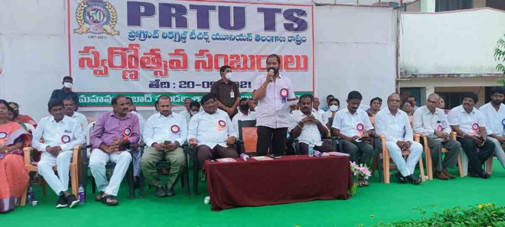 మహ్మదాబాద్, సెప్టెంబరు 20 : ఉ ద్యోగులకు సంఘాలతోనే భద్రత ఉంటుందని ఎక్సైజ్, క్రీడా శాఖ మంత్రి శ్రీనివాస్గౌడ్ తెలిపారు. సోమవారం మండల కేంద్రంలోని బాలుర ఉన్నత పాఠశాలలో పీఆర్టీయూ టీఎస్ ఆధ్వర్యంలో స్వర్ణోత్సవ సంబురాలు, విద్యాసదస్సు నిర్వహించారు. ఈ సందర్భం గా మంత్రి మాట్లాడుతూ సత్ప్రవర్తన, మంచి నాయకత్వం, సంస్కృతి, సంప్రదాయాలకు ముఖ్య మార్గదర్శకత్వం వ హించేది విద్యావ్యవస్థే అని పేర్కొన్నారు. ఉపాధ్యాయ సమస్యల సాధనలో పీఆర్టీయూ ఎంతో కృషి చేస్తుందన్నారు. తె లంగాణ ఏర్పడక ముందు, వచ్చిన త ర్వాత అనేక మార్పులు చోటు చేసుకున్నాయన్నారు. విద్యావ్యవస్థను పటిష్టం చేసేందుకు ముఖ్యమంత్రి ఎంతో కృషి చేస్తున్నారన్నారు. విద్యార్థులు కడుపు కాలి అల్లాడే కాలం నుంచి కడుపు నిం డా భోజనాలు, ఉచితంగా పాఠ్య పుస్తకాలు, దుస్తుల పంపిణీకి చేరుకున్నామన్నారు. అడగకముందే అవుట్ సోర్సిం గ్, కాంట్రాక్టు, తదితర ఉద్యోగులకు 30 శాతం వేతనాలు పెంచి టీఆర్ఎస్ ప్రభు త్వం అండగా నిలిచిందన్నారు. ఎవరికి సమస్య వచ్చినా చేదోడువాదోడుగా ఉం టామన్నారు. ఉద్యోగులు శాఖల సమన్వయ లోపాలను గుర్తించి ప్రభుత్వం దృష్టికి తీసుకొస్తే పరిష్కరించడానికి సు లువుగా ఉంటుందన్నారు. మంత్రి మా ట్లాడుతున్న సమయంలో మసీదులో ముస్లింలు ప్రార్థన చేస్తుండగా, హజాను గౌరవించి ప్రసంగాన్ని మధ్యలో ఆపివేశారు. హజాన్ అయిపోయిన తర్వాత మాట్లాడారు. అనంతరం ఎమ్మెల్యే మహేశ్రెడ్డి మాట్లాడుతూ ఉద్యమ సమయంలో ఉద్యోగుల పాత్ర కీలకమైనదన్నారు. రాష్ట్ర ఏర్పడిన తర్వాత విద్యావ్యవస్థలో పాఠశాలలు బలోపేతమయ్యాయన్నారు. రాష్ట్రంలో మొదటిసారిగా పరిగిలో పీఆర్టీయూ భవనం నిర్మించినట్లు తెలిపారు. కుల్కచర్ల, పరిగిలో భవనాల నిర్మాణానికి కృషి చేయనున్నట్లు చెప్పారు. ఎమ్మెల్సీ కాటేపల్లి జనార్దన్రెడ్డి మాట్లాడుతూ పీఆర్టీయూ కార్యకర్తల కృషితో మొక్కలా ఉన్న సంఘం మహావృక్షంలా మారిందన్నారు. రాష్టంలోనే మొదటి స్వర్ణోత్సవ సంబురాలు నిర్వహించిన మహ్మదాబాద్ పీఆర్టీయూ శాఖను అభినందించారు. పీఆర్టీయూ పుస్తకావిష్కరణ అనంతరం రిటైర్డ్ ఉపాధ్యాయుడు కృష్ణారెడ్డి మంత్రిని సన్మానించారు. కార్యక్రమంలో ఎంపీపీ మాధవి, జెడ్పీటీసీ శ్రీనివాస్రెడ్డి, పీఏసీసీఎస్ చైర్మన్ శ్రీనివాస్రెడ్డి, రైతుబంధు సమితి మండలాధ్యక్షుడు గిరిధర్రెడ్డి, సర్పంచ్ పార్వతమ్మ, ఎంపీటీసీ చెన్నయ్య, హెచ్ఎం వెంకట్రెడ్డి, వైస్ ఎంపీపీ ఈశ్వరయ్య గౌడ్, మాజీ వైస్ ఎంపీపీ రాధారెడ్డి, పీఆర్టీయు టీఎస్ రాష్ట్ర అధ్యక్షుడు శ్రీపాల్రెడ్డి, జిల్లా అధ్యక్షుడు నారాయణగౌడ్, సభ్యులు రఘురాంరెడ్డి, విజయానంద్రెడ్డి, విజయ్కుమార్గౌడ్, జైపాల్రెడ్డి, శ్రీధర్రెడ్డి, శ్రీనివాస్రెడ్డి, విజయ్కుమార్, భీంరెడ