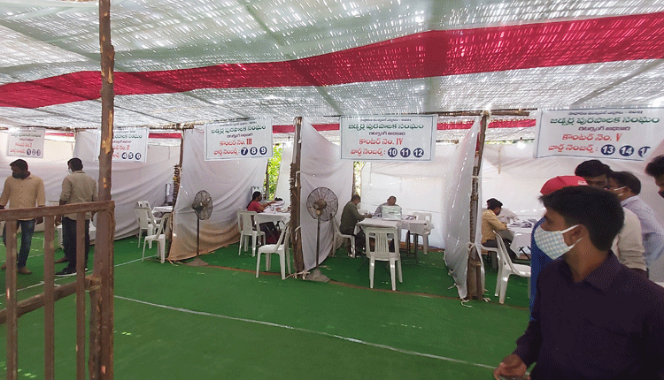 జడ్చర్ల టౌన్, ఏప్రిల్ 16 : జడ్చర్ల మున్సిపాలిటీ ఎన్నికల నామినేషన్ల స్వీకరణలో భా గంగా పకడ్బందీ ఏ ర్పాట్లు చేశా రు. మున్సిపల్ కార్యాలయంలోని నామినేషన్ల స్వీకరణ కేం ద్రంలో మూడు వార్డులకో కేంద్రం చొప్పున ఏర్పాటు చేశా రు. ఒక్కో కేంద్రంలో రిటర్నింగ్ అధికారి, సహాయ రిటర్నింగ్ అధికారిని నియమించారు. కొవిడ్ నిబంధనల మే రకు శానిటైజర్లు, మాస్కులు అందుబాటులో ఉంచారు. నామినేషన్లకు వచ్చిన వారు భౌతికదూరాన్ని పాటించేలా గుర్తులు వేశారు. నామినేషన్ల దాఖలుకు సంబంధించిన వివరాలు సూచిస్తూ బ్యానర్లను ఏర్పాటు చేశారు. శుక్రవారం నామినేషన్ల ప్రక్రియ ప్రారంభం కాగా.. మొదటి రోజు ఒక్క నామినేషన్ కూడా దాఖలు కాలేదు. మొదటి రోజు కావడంతో అభ్యర్థులు నామినేషన్ల దాఖలు ఫారాన్ని తీసుకెళ్లారు.