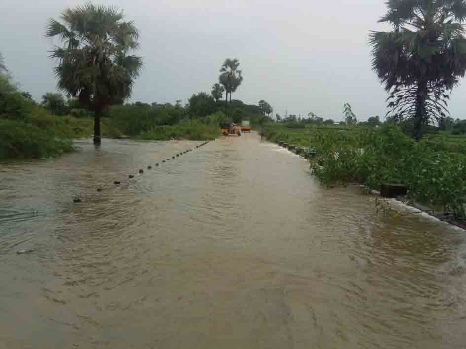 వాహనాల రాకపోకలు నిలిచిపోయాయి. నామవరం పెద్ద చెరువు అలుగు పోయడంతో జాతీయ రహదారిని కలిపే రోడ్డు తెగిపోవడంతో ఎస్ఐ ప్రవీణ్కుమార్ పరిశీలించి భద్రతా చర్యలు చేపట్టారు.