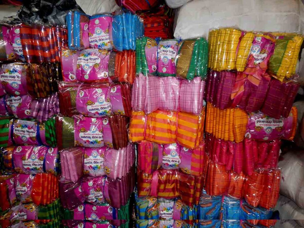 గోదాముల్లో భద్రంగా చీరెలు..