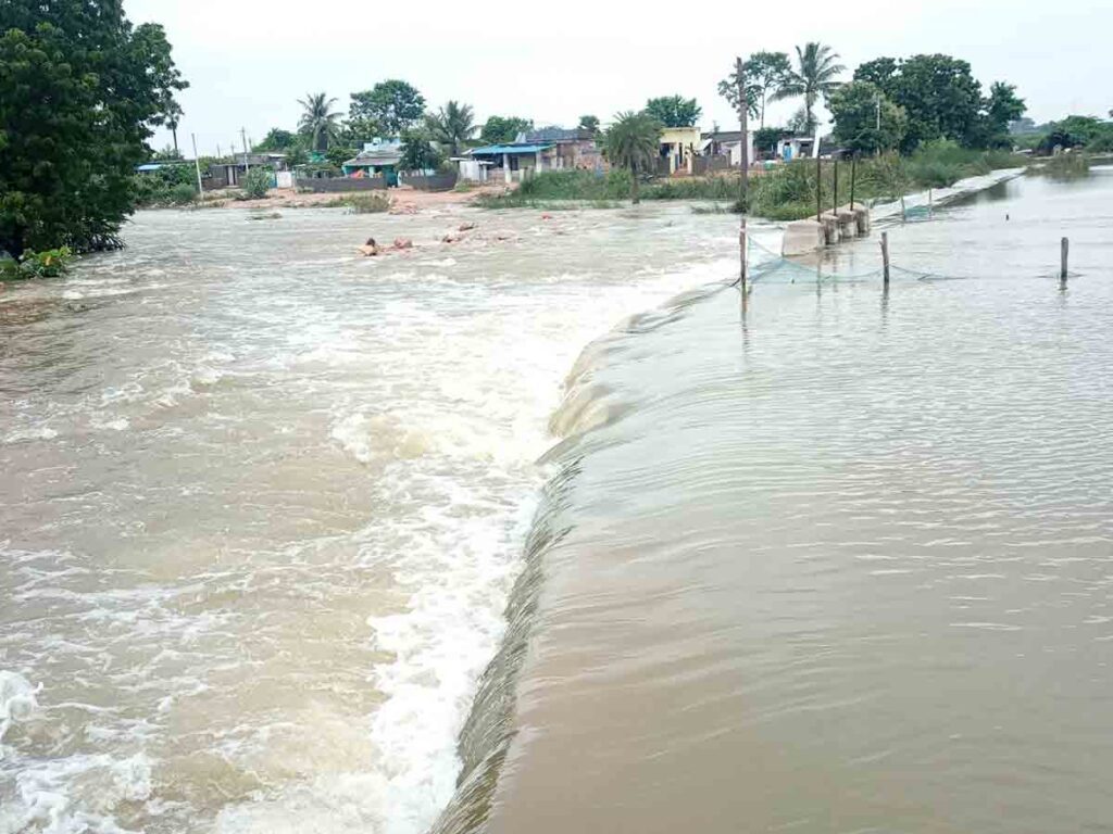 నల్లగొండ ప్రతినిధి, సెప్టెంబర్28(నమస్తే తెలంగాణ) : వర్షాల ప్రభావంతో ఉమ్మడి జిల్లావ్యాప్తంగా వాగులు ఉప్పొంగుతున్నాయి. మెజార్టీ ప్రాంతాల్లో చెరువులు, కుంటలు అలుగు పోస్తున్నాయి. వరద కారణంగా పలుచోట్ల రాకపోకలకు అంతరాయం ఏర్పడింది. హైదరాబాద్లో కురిసిన భారీ వర్షాలతో మూసీ నది ఉగ్రరూపం దాల్చింది. యాదాద్రి భువనగిరి జిల్లాలో పోచంపల్లి, బీబీనగర్, వలిగొండ మండలాల్లోని పలుచోట్ల కల్వర్టులు, బ్రిడ్జీల మీదుగా ప్రవహిస్తున్నది. దాంతో పలు గ్రామాల మధ్య రాకపోకలు నిలిచిపోయాయి. నల్లగొండ జిల్లాలోని మర్రిగూడెం, చండూరు, మునుగోడు మండలాల్లోనూ వాగులు ఉప్పొంగుతున్నాయి. నిడమనూరు మండలం ఊట్కూర్-ఎర్రబెల్లి, మాడ్గులపల్లి మండలం ఆగామోత్కూర్-భీమనపల్లి మధ్య కల్వర్టులు ధ్వంసమయ్యాయి. జిల్లాలో 12 ఇండ్లు పూర్తిగా, 82 ఇండ్లు పాక్షికంగా దెబ్బతిన్నట్లు అధికారులు వెల్లడించారు. పిడుగుపాటుతో మూడు పశువులు మృత్యువాత పడ్డాయి. సూర్యాపేట జిల్లాలోని మఠంపల్లి, మేళ్లచెర్వు, చింతలపాలెం, నేరడుచర్ల మండలాల్లోనూ చెరువులు మత్తడి దుంకుతున్నాయి. చింతలపాలెం మండలంలోని బుగ్గవాగులో మంగళవారం ఉదయం ఓ లారీ వరద ఉధృతికి బోల్తా పడింది. డ్రైవర్, క్లీనర్ అప్రమత్తమై ప్రాణాలు కాపాడుకున్నారు.