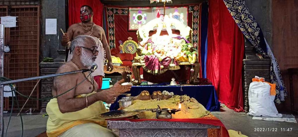 యాదాద్రి, జనవరి 22: యాదాద్రి శ్రీ లక్ష్మీ నరసింహ స్వామి దివ్యక్షేత్రంలో శనివారం నిత్య పూజలు కోలాహలంగా జరిగాయి. బాలాలయంలోని ప్రతిష్ఠామూర్తులకు నిజాభిషేకం మొదలుకుని తులసీ అర్చనలు శాస్ర్తోక్తంగా నిర్వహించారు. ఉదయం మూడు గంటలకు సుప్రభాతం నిర్వహించిన అర్చకులు లక్ష్మీ నరసింహుడిని ఆరాధిస్తూ ప్రత్యేక పూజలు చేశారు. హారతి నివేదనలు అర్పించారు. ఉదయం 8 గంటలకు నిర్వహించిన శ్రీసుదర్శన హోమం ద్వారా శ్రీవారిని కొలిచారు. సుదర్శన ఆళ్వారును కొలుస్తూ హోమం జరిపారు. నిత్య కల్యాణోత్సవంలో భక్తులు అధిక సంఖ్యలో పాల్గొని స్వామి, అమ్మవార్ల కల్యాణ వేడుకలను కనులారా వీక్షించి తరించారు. దేవేరులను ముస్తాబు చేసి గజవాహనంపై బాలాలయ ముఖ మండపంలో ఊరేగించారు. శ్రీ లక్ష్మీ సమేతుడైన నారసింహుడిని ఆరాధిస్తూ గంటన్నరకు పైగా కల్యాణ తంతును జరిపారు. కల్యాణ మూర్తులను ముస్తాబు చేసి బాలాలయం ముఖ మండపంలో భక్తులకు అభిముఖంగా అధిష్ఠించి కల్యాణ తంతును నిర్వహించారు. ఆలయంలో దర్శనం అనంతరం రూ.200 చెల్లించి అతి తక్కువ సమయంలో జరుపుకొనే అష్టోత్తర పూజలు పెద్ద ఎత్తున జరిగాయి. సాయంత్రం అమ్మవారికి కుంకుమార్చన, ఆంజనేయ స్వామివారికి సహస్ర నామార్చన చేశారు. సత్యనారాయణ వ్రతాల్లో భక్తులు అధిక సంఖ్యలో పాల్గొని మొక్కులు తీర్చుకున్నారు. శ్రీవారి ఖజానాకు శనివారం రూ. 8,80,317 ఆదాయం వచ్చినట్లు ఈఓ గీత తెలిపారు.