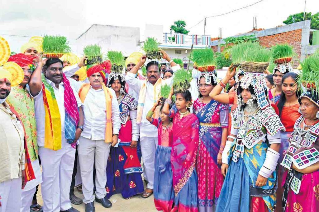 ఆమనగల్లు, ఆగస్టు 12 : మేడిగడ్డ పంచాయతీలో గురువారం తీజ్ సంబురాలు అంబురాన్నంటాయి. సంప్రదాయ దుస్తులు ధరించిన గిరిజన మహిళలు డప్పుచప్పుళ్లు, ఆటపాటలతో వేడుకలకు వన్నె తెచ్చారు. వేడుకలకు ఎమ్మెల్సీ కసిరెడ్డి నారాయణరెడ్డి, ఎమ్మెల్యే జైపాల్యాదవ్, టీఆర్ఎస్ నాయకుడు శ్రీనివాస్రెడ్డి ముఖ్య అతిథులుగా పాల్గొన్నారు. తీజ్ వేడుకలు భావితరాలకు మన సాంస్కృతిక, సంప్రదాయాల ప్రాముఖ్యతను వివరించేందుకు ఎంతగానో ఉపయోగపడుతాయని వారు పేర్కొన్నారు. గిరిజన మహిళలు, చిన్నారులతో కలిసి నృత్యాలు చేసి ఉత్సాహపరిచారు. అనంతరం తండాలో తొమ్మిదిరోజుల పాటు కులదైవాలకు ప్రత్యేక పూజలు చేసిన గిరిజన మహిళలు తీజ్బుట్టలను నెత్తిపై పెట్టుకొని ఊరేగింపుగా వెళ్లి అమ్మవారికి నైవేద్యం సమర్పించారు. పంటలు బాగా పండాలని, అంటురోగాల బారిన పడకుండా చల్లంగా కాపాడాలి తల్లి అంటూ గిరిజనులు తమ మొక్కులు చెల్లించుకున్నారు. ఉత్సవాలను తిలకించేందుకు తండావాసులతోపాటు ఆమనగల్లు పట్టణం నుంచి పెద్దఎత్తున ప్రజలు తరలివచ్చారు.