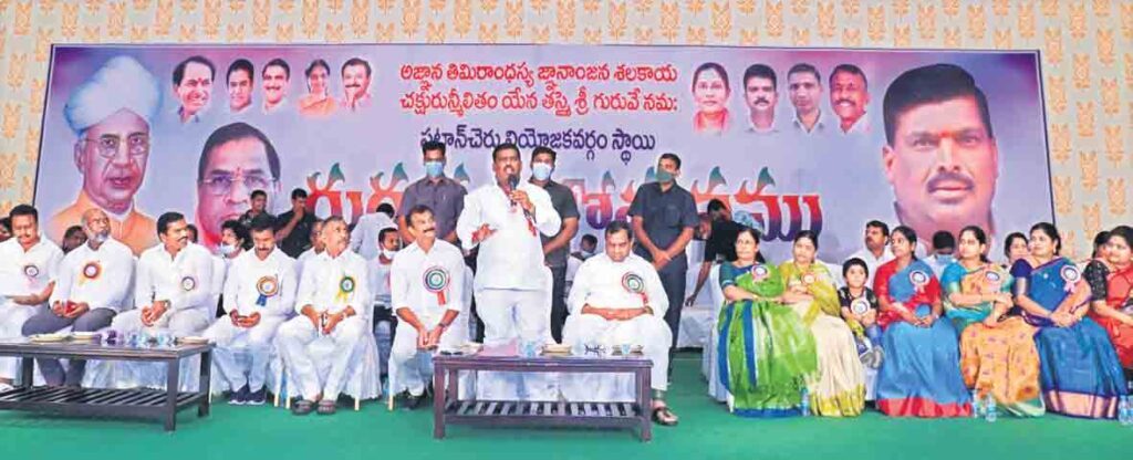 పటాన్చెరు, సెప్టెంబర్ 30 : సమాజాభివృద్ధిలో ఉపాధ్యాయుల పాత్ర ఎంతో కీలకమని, రేపటి తరాన్ని తయారు చేసేది గురువేనని శాసన మండలి ప్రొటెమ్ చైర్మన్ భూపాల్రెడ్డి అన్నారు. గురువారం పటాన్చెరు పట్టణంలోని జీఎమ్మార్ కన్వెన్షన్ సెంటర్లో ఎమ్మెల్యే గూడెం మహిపాల్రెడ్డి సౌజన్యంతో నియోజకవర్గ స్థాయి గురుపూజోత్సవ కార్యక్రమాన్ని నిర్వహించారు. ఈ కార్యక్రమానికి ప్రొటెమ్ చైర్మన్ భూపాల్రెడ్డి, మెదక్ ఎంపీ కొత్త ప్రభాకర్రెడ్డి, జడ్పీ చైర్పర్సన్ మంజుశ్రీ ముఖ్య అతిథులుగా హాజరయ్యారు. ఈ సందర్భంగా నియోజకవర్గంలోని ప్రభుత్వ పాఠశాలల ఉత్తమ ఉపాధ్యాయులను వారు సన్మానించారు. ప్రొటెమ్ చైర్మన్ మాట్లాడారు. ముందుగా ఉపాధ్యాయులకు గురుపూజోత్సవ శుభాకాంక్షలు తెలిపారు. ఈ రోజు తాను శాసనమండలి ప్రొటెమ్ చైర్మన్గా ఉన్నానంటే చిన్నప్పుడు తనకు గురువులు చేసిన అక్షరాభ్యాసంతోనే అన్నారు. తన సొంత నిధులు ఖర్చు చేసి 20 తరగతి గదులతో ఇంటర్ కళాశాలను కట్టించినట్టు తెలిపారు. ఎంపీ కొత్త ప్రభాకర్రెడ్డి, పటాన్చెరు ఎమ్మెల్యే మహిపాల్రెడ్డి, జడ్పీ చైర్పర్సన్ మంజుశ్రీ మాట్లాడారు. రాష్ట్ర ప్రభుత్వం సర్కారు విద్యకు పెద్దపీట వేస్తున్నదన్నారు. ఉపాధ్యాయులు ఏ సమస్య ఉన్నా తమ దృష్టికి తీసుకురావాలన్నారు. కార్యక్రమంలో జడ్పీ వైస్ చైర్మన్ ప్రభాకర్, మార్కెట్ కమిటీ చైర్పర్సన్ హారిక, మున్సిపల్ చైర్మన్లు తుమ్మల పాండురంగారెడ్డి, రోజా, ఎంపీపీలు సుష్మశ్రీ, సద్ధి ప్రవీణ రెడ్డి, జడ్పీటీసీలు సుప్రజ రెడ్డి, కార్పొరేటర్లు సింధూ రెడ్డి, పుష్ప యాదవ్, మెట్టు కుమార్ యాదవ్, ఆత్మకమిటీ చైర్మన్ గడీల కుమార్గౌడ్, ఎంపీటీసీలు గోల్కొండ నాగజ్యోతి, ఎంపీడీవో బన్సీలాల్, ఎంఈవో పీపీ రాథోడ్, పరమేశ్, రవీందర్ పాల్గొన్నారు.
