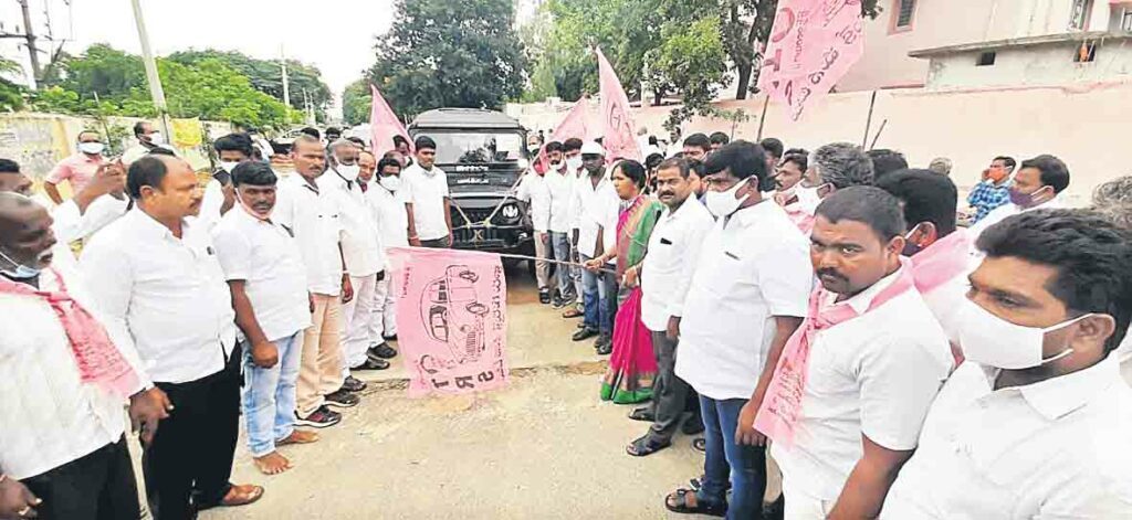 కరీంనగర్ జిల్లా హుజూరాబాద్లో దళితబంధు పథకం ప్రారంభోత్సవ కార్యక్రమానికి ఉమ్మడి మెదక్ జిల్లాలోని వివిధ నియోజకవర్గాల నుంచి ఎమ్మెల్యేలు, ఎమ్మెల్సీలు, ఇతర ప్రజాప్రతినిధులు, టీఆర్ఎస్ నాయకులు, దళిత నాయకులు పెద్ద సంఖ్యలో తరలివెళ్లారు. సిద్దిపేట మీదుగా హుస్నాబాద్ నుంచి హుజూరాబాద్ సభకు వెళ్లారు. ఆదివారం రాత్రి కురిసిన భారీ వర్షానికి వాగులు పొంగిపొర్లాయి. సిద్దిపేట -హన్మకొండ రహదారిపై బస్వాపూర్ వద్ద మోయతుమ్మెద వాగు పొంగి పొర్లడంతో వాహనాల రాకపోకలను మళ్లించారు. రాంపూర్ క్రాస్ రోడ్డు నుంచి నంగునూరు, గట్లమల్యాల మీదుగా నాగసముద్రాల నుంచి హుస్నాబాద్ నుంచి హుజూరాబాద్కు వెళ్లారు. కాగా, దళితబంధును హర్షిస్తూ పలుచోట్ల సీఎం కేసీఆర్, మంత్రి హరీశ్రావు చిత్రపటాలకు పాలతో అభిషేకాలు చేశారు.