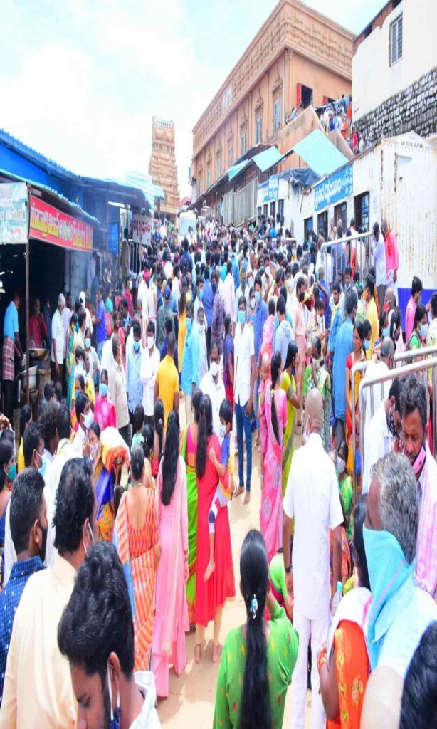 యాదాద్రి, సెప్టెంబర్ 4 : యాదాద్రి లక్ష్మీ నరసింహస్వామివారి క్షేత్రంలో భక్తుల రద్దీ కొనసాగింది. ధర్మ దర్శనానికి 2 గంటలు, ప్రత్యేక దర్శనానికి గంట సమయం పట్టింది. సత్యనారాయణ స్వామి వ్రతాల్లో పాల్గొన్న వారితో పాటు నిత్యకల్యాణంలో పాల్గొన్న భక్తులు స్వామి వారి దర్శనానికి బారులుదీరారు. శ్రావణమాసం చివరి శనివారం కావడంతో రద్దీ పెరిగింది. బాలాలయంలో నిత్యపూజలు సందడి నెలకొంది. ప్రతిష్ఠామూర్తులకు నిజాభిషేకం మొదలుకుని తులసీ ఆర్చన వరకు నిత్యపూజలు జరిపారు. ఉదయం 3 గంటలకు సుప్రభాతం నిర్వహించిన అర్చకులు శ్రీలక్ష్మీ నారసింహుడిని ఆరాధిస్తూ ప్రత్యేక పూజ లు చేశారు. బాలాలయం ముఖ మండపంలో నిత్య కల్యాణోత్సవం ఘనంగా జరిపించారు. సాయంత్రం అమ్మవారికి కుంకుమార్చన, అంజనేయ స్వామివారికి సహస్రనామార్చన చేశారు.