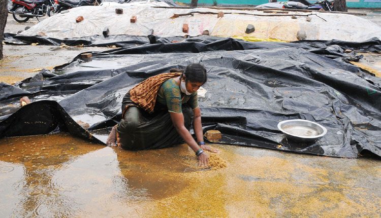 కల్లాల్లో. కేంద్రాల్లో తడిసిన ధాన్యపు రాశులు