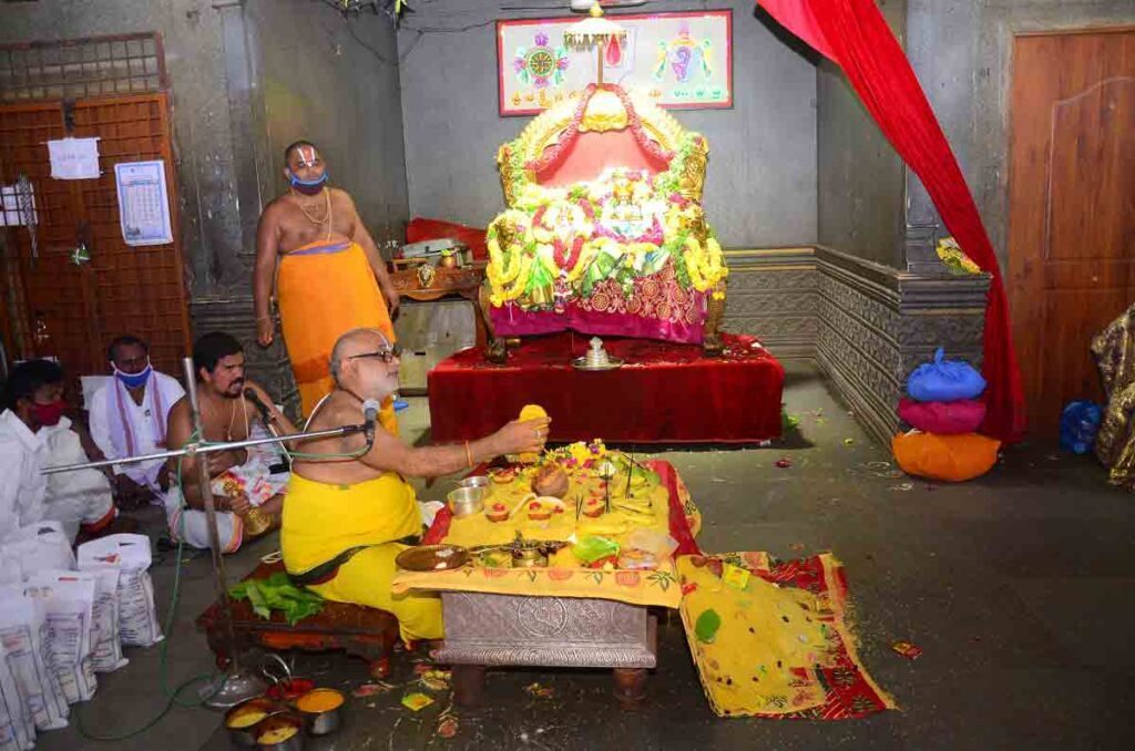 యాదాద్రి, సెప్టెంబర్ 19: యాదాద్రి శ్రీ లక్ష్మీసమేతుడైన నారసింహస్వామివారికి నిత్య ఆరాధనలు అత్యంత వైభవంగా జరిగాయి. ఆర్జిత పూజల కోలాహలం ఆదివారం తెల్లవారు జామున మూడు గంటలకు మొదలు కాగా సుప్రభాతం అనంతరం అర్చకులు ప్రత్యేక పూజలు చేశారు. హారతి నివేదనలు అర్పించారు. శ్రీసుదర్శన హోమం ద్వారా శ్రీవారిని కొలిచారు. సుదర్శన ఆళ్వారును కొలుస్తూ హోమం జరిపారు. దేవేరులను ముస్తాబు చేసి గజవాహనంపై ముఖ మండపంలోనే ఊరేగించారు. లక్ష్మీసమేతుడైన నారసింహుడిని ఆరాధిస్తూ సుమారు గంటన్నరకు పైగా కల్యాణ తంతును జరిపారు. ఇలవేల్పు దర్శనం కోసం వచ్చిన భక్తులతో స్వల్ప రద్దీ కొనసాగింది. సాయంత్రం వేళ అలంకార జోడు సేవలు నిర్వహించారు. మండపంలో అష్టోత్తరం జరిపించారు. శ్రీపర్వతవర్ధినీ సమేత రామలింగేశ్వరుడికి రుద్రాభిషేకం చేశారు. అమ్మవారికి కుంకుమార్చన నిర్వహించారు. శ్రీవారి ఖజానాకు రూ.15,15,405 ఆదాయం వచ్చినట్లు ఈఓ గీత తెలిపారు.