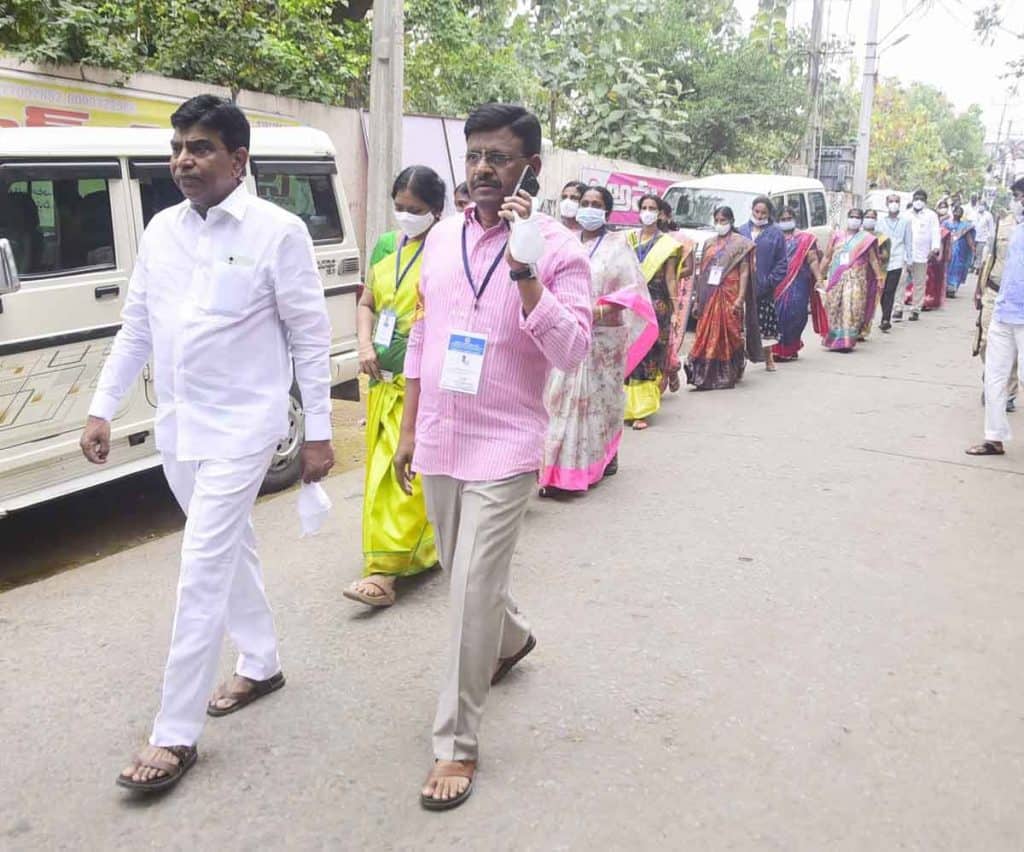 కొత్తగూడెంలోని పోలింగ్ కేంద్రాన్ని కలెక్టర్ అనుదీప్ తనిఖీ చేశారు. భద్రాచలంలో 84 మంది, కొత్తగూడెంలో 221 మంది తమ ఓటు హక్కును వినియోగించుకున్నారన్నారు. పక్కా నిబంధనలు అమలు చేయాలని పోలింగ్ సిబ్బందికి సూచించారు. అనంతరం కేంద్రం బయట ఏర్పాటు చేసిన వైద్య శిబిరం, కరోనా పరీక్షల కేంద్రాన్ని పరిశీలించారు. కలెక్టర్ వెంట ఆర్డీవో స్వర్ణలత, ఏఎస్పీ ప్రసాదరావు, డీఎస్పీ వెంకటేశ్వరబాబు, మున్సిపల్ కమిషనర్లు, తహసీల్దార్లు, ఎంపీవోలు ఉన్నారు. ఖమ్మంలోని పోలింగ్ కేంద్రాన్ని ఎన్నికల పరిశీలకుడు సి.సుదర్శన్రెడ్డి, కలెక్టర్ వీపీ గౌతమ్, నగరపాలక సంస్థ కమిషనర్ ఆదర్శ్ సురభి పరిశీలించారు.