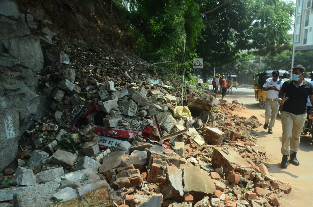 అదృష్టవశాత్తూ గోడ కూలిన సమయంలో కార్లలో ఎవరూ లేకపోవడంతో పాటు రోడ్డుపై జన సంచారం లేకపోవడంతో ముప్పు తప్పింది. సంఘటనపై సమాచారం అందుకున్న జీహెచ్ఎంసీ అదికారులు అక్కడకు చేరుకుని శిథిలాల తొలగింపు కార్యక్రమాన్ని చేపట్టారు. కాగా ఈ ప్రహరీని ఆర్అండ్బీ ఆద్వర్యంలో నిర్మించినందున త్వరలోనే పునర్నిర్మాణం చేస్తారని అధికారులు తెలిపారు,