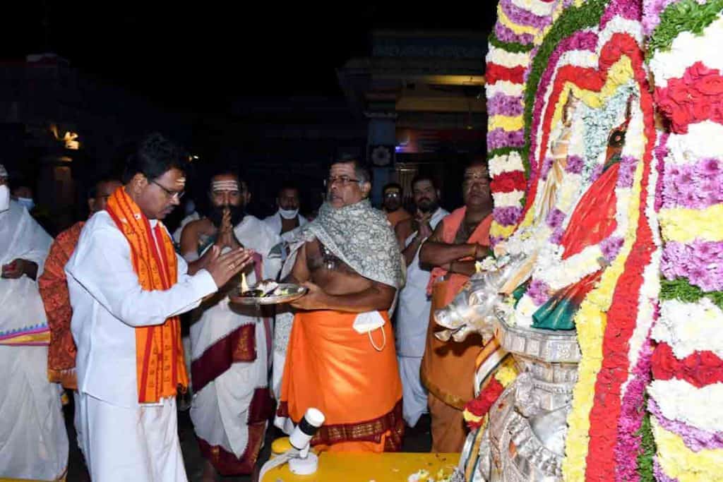 శ్రీశైలం, డిసెంబర్ 20 : ద్వాదశ జ్యోతిర్లింగాల్లో ఒకటైన శ్రీశైల మల్లన్నకు ధనుర్మాస ఆరుద్ర నక్షత్రాన్ని పురస్కరించుకొని వార్షిక ఆరుద్రోత్సవాన్ని శాస్ర్తోక్తంగా నిర్వహించినట్లు ఈవో లవన్న తెలిపారు. ఆదివారం రాత్రి 10 గంటలకు లోక కల్యాణాన్ని కాంక్షిస్తూ మహా సంకల్పాన్ని పఠించారు. ముందుగా గణపతి పూజ చేసి గర్భాలయంలో స్వామివారికి మహాన్యాస పూర్వక లింగోద్భవకాలంలో రుద్రాభిషేకం, అన్నాభిషేకం, ఏకాంతసేవ కార్యక్రమాలు నిర్వహించారు. సోమవారం తెల్లవారుజామున 3 గంటలకు మంగళవాయిద్యాల నడుమ ఆలయ ద్వారాలు తెరిచి సుప్రభాత సేవ, మహామంగళహారతి, స్వామి, అమ్మవార్లకు ప్రాత:కాల పూజలు చేశారు. అనంతరం ఉత్సవ విగ్రహాలను ఆలయ ముఖ మండపంలో ఉత్తర ముఖంగా వేంచుంబజేసి ప్రత్యేక పూజలు చేశారు. నంది వాహనంపై ఆసీనులైన స్వామిఅమ్మవార్లను దర్శించుకున్న భక్తులకు అర్చక వేదపండితులు తీర్థప్రసాదాలు అందజేశారు.