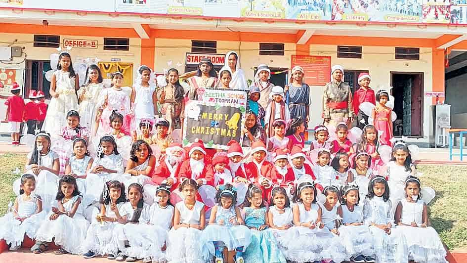 మనోహరాబాద్, డిసెంబర్ 24: తూప్రాన్ గీతా స్కూల్లో విద్యార్థులు క్రిస్మస్ వేడుకలను ఘనంగా నిర్వహించారు. ఈ సందర్భంగా పాఠశాల ఆవరణలో పశువులపాక ఏర్పాటు చేశారు. శాంతాక్లాజ్, మేరీమాత వేషధారణలో సందడి చేశా రు. కార్యక్రమంలో పాఠశాల కరస్పాండెంట్ రామాంజనేయులు,చైర్ పర్సన్ ఉష, డైరెక్టర్, మున్సిపల్ చైర్మన్ రవీందర్గౌడ్, డైరెక్టర్ నారాయణ, ప్రిన్సిపాల్ వెంకటకృష్ణారావు, ఇన్చారి ప్రిన్సిఊపాల్ ప్రేంరాజ్, వైస్ ప్రిన్సిపాల్ రాజేశ్వర్, ఉపాధ్యాయ బృందం పాల్గొన్నారు.