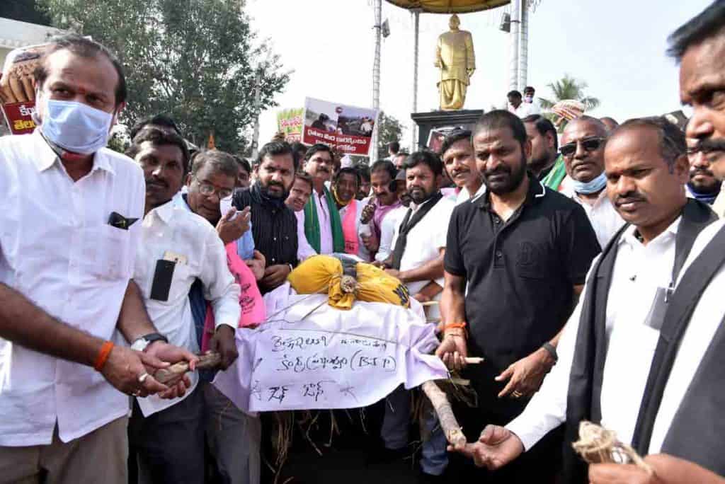 మహబూబ్నగర్, డిసెంబర్ 20 (నమస్తే తెలంగాణ ప్రతినిధి) : దేశంలో వ్యవసాయ రంగాన్ని అంబానీ, ఆదానీలకు అప్పజెప్పేందుకు కేంద్ర ప్రభుత్వం కుట్ర చేస్తున్నదని ఎక్సైజ్, క్రీడా శాఖ మంత్రి శ్రీనివాస్గౌడ్ ఆరోపించారు. ధాన్యం కొనుగోలుపై కేంద్రం వైఖరికి నిరసనగా మహబూబ్నగర్ జిల్లా కేంద్రంలోని జెడ్పీ గ్రౌండ్ నుంచి తెలంగాణ చౌరస్తా వరకు ర్యాలీ, శవయాత్ర నిర్వహించారు. కేంద్ర ప్రభుత్వ తీరుకు వ్యతిరేకంగా నినాదాలు చేశారు. ర్యాలీలో నల్లదుస్తులు ధరించిన మంత్రి డప్పు కొట్టారు. దిష్టిబొమ్మ పాడె మోశారు. తెలంగాణ చౌరస్తా వద్ద కేంద్ర ప్రభుత్వ దిష్టిబొమ్మ దహనం చేశారు. ఈ సందర్భంగా మంత్రి మాట్లాడుతూ ఏడేండ్లలో తెలంగాణ సాధించిన అభివృద్ధిని, అన్నదాతలు బాగుపడిన విధానాన్ని అందరూ హర్షిస్తున్నారన్నారు. పక్కనే ఉన్న కర్ణాటక రాష్ట్రంలోని రాయిచూరు బీజేపీ ఎమ్మెల్యే, ప్రజలు తెలంగాణలో విలీనం చేయాలని అంటున్నారని గుర్తు చేశారు. ఆరుగాలం కష్టపడి పంట పండిస్తున్న అన్నదాతపై కేంద్రం కత్తి దూస్తుందన్నారు. విద్యుత్ రంగ సంస్థలను ప్రైవేట్కు అప్పజెప్పాలని చూస్తున్నదని తెలిపారు. తెలంగాణ సర్కార్ ఉచితంగా ఇస్తున్న వ్యవసాయ విద్యుత్కు మీటర్లు పెట్టి అన్నదాతను ఆగం చేసే కుట్రకు కేంద్రం తెరలేపుతోందన్నారు. ఉచిత విద్యుత్ ఆపేస్తే రైతుల పరిస్థితి ఏమైపోవాలని ప్రశ్నించారు. పంజాబ్లో ధాన్యం కొంటరు.. తెలంగాణలో కొనరు.. పంజాబ్కో న్యాయం.. తెలంగాణకు ఓ న్యాయమా అని ప్రశ్నించారు. కేం ద్రంపై పోరులో తగ్గేదేలేదన్నారు. ఎట్టిపరిస్థితుల్లోనూ కేంద్రం దిగివచ్చి తెలంగాణ రైతుల ధాన్యం కొని రైతుల ప్రయోజనాలు కాపాడాల్సిందేనని డిమాండ్ చేశారు. కార్యక్రమంలో మున్సిపల్ చైర్మన్ కేసీ నర్సింహులు, జిల్లా గ్రంథాలయా ల సంస్థ చైర్మన్ రాజేశ్వర్ గౌడ్, డీసీసీబీ వైస్ చైర్మ న్ కొరమోని వెంకటయ్య, రైతుబంధు సమితి అ ధ్యక్షులు, సభ్యులు, రైతులు, రైతు సంఘాల నేత లు, పలువురు ప్రజాప్రతినిధులు పాల్గొన్నారు.