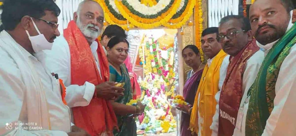 మక్తల్ రూరల్, డిసెంబర్19: పడమటి ఆంజనేయస్వామి తమ ఇంటి దేవుడని, అంజన్న సేవలో తాను పాల్గొన డం పూర్వజన్మ సుకృతమని మక్తల్ ఎమ్మెల్యే చిట్టెం రామ్మోహన్రెడ్డి అన్నారు. ఆదివారం మక్తల్ పట ్టణంలో జ రు గుతున్న పడమటి అంజనేయస్వామి బ్రహ్మోత్సవాల సందర్భంగా ఆయన ఉత్సవాల ఏర్పాట్లను పరిశీలిం చారు. అనంతరం ఆలయంలో స్వామివారిని దర్శించుకుని ప్రత్యే క పూజలు చేశారు. ఈ సందర్భంగా ఆలయ అర్చకులు తీర్థప్రసాదాలు ఇచ్చి ఎమ్మెల్యేను ఆశీర్వదించా రు. అనంతరం ఆయన ఆలయ ప్రాంగణంలో అధికారు లతో మాట్లాడారు. ఉమ్మడి జిల్లాలో పడమటి అంజనేయస్వామి ఆలయం ఎంతో ప్రసిద్ధ్ది చెందిందన్నారు. ఈప్రాంత ప్రజల ఇలవేల్పు అయిన అంజనేయస్వామి ఆలయ అభివృద్ధి కోసం శాయశక్తుల కృషి చేస్తానన్నారు. స్వామివారి దర్శనానికి వచ్చే భక్తులకు ఎలాంటి ఇబ్బందులు కలుగకుండా చూడాలని ఆయన అధికారులను ఆదేశించారు. ఉత్సవాల ఏర్పాట్లు ఎలా జరుగుతున్నాయని ఆయన అధికారులను అడిగి తెలుసుకున్నారు. వాహనాలకు, ట్రాఫిక్ సమస్యలు రాకుండా చూడాలని పోలీసు అధికారులను ఆదేశించారు. ఈ సందర్భంగా ఆలయ సంప్రదాయం ప్రకా రం వంశపారంపర్య ధర్మకర్త భీమాచార్య, ఆలయ ఈవో సత్యనారాయణ, కమిటీ సభ్యుడు అశోక్గౌడ్ ఎమ్మెల్యే చిట్టెం రామ్మోహన్రెడ్డిని శాలువాతో ఘనంగా సన్మానించారు. ఈ కార్యక్రమంలో మక్తల్ మార్కెట్ కమిటీ చైర్మన్ రాజేశ్గౌడ్, మాగనూర్ జెడ్పీటీసీ వెంకటయ్య, మార్కెట్ కమిటీ మాజీ చైర్మన్ నరసింహాగౌడ్, టీఆర్ఎస్ పార్టీ మాగనూర్ మండల కమిటీ అధ్యక్షుడు ఎల్లారెడ్డి, పట్టణ కమిటీ అధ్యక్షుడు అమరేందర్రెడ్డి, మాజీ ఎంపీటీసీ రవిశంకర్రెడ్డి, మీడియా కన్వీనర్ నేతాజీరెడ్డి, నాయకులు శేఖర్రెడ్డి, ఈశ్వర్యాదవ్ తదితరులు పాల్గొన్నారు.