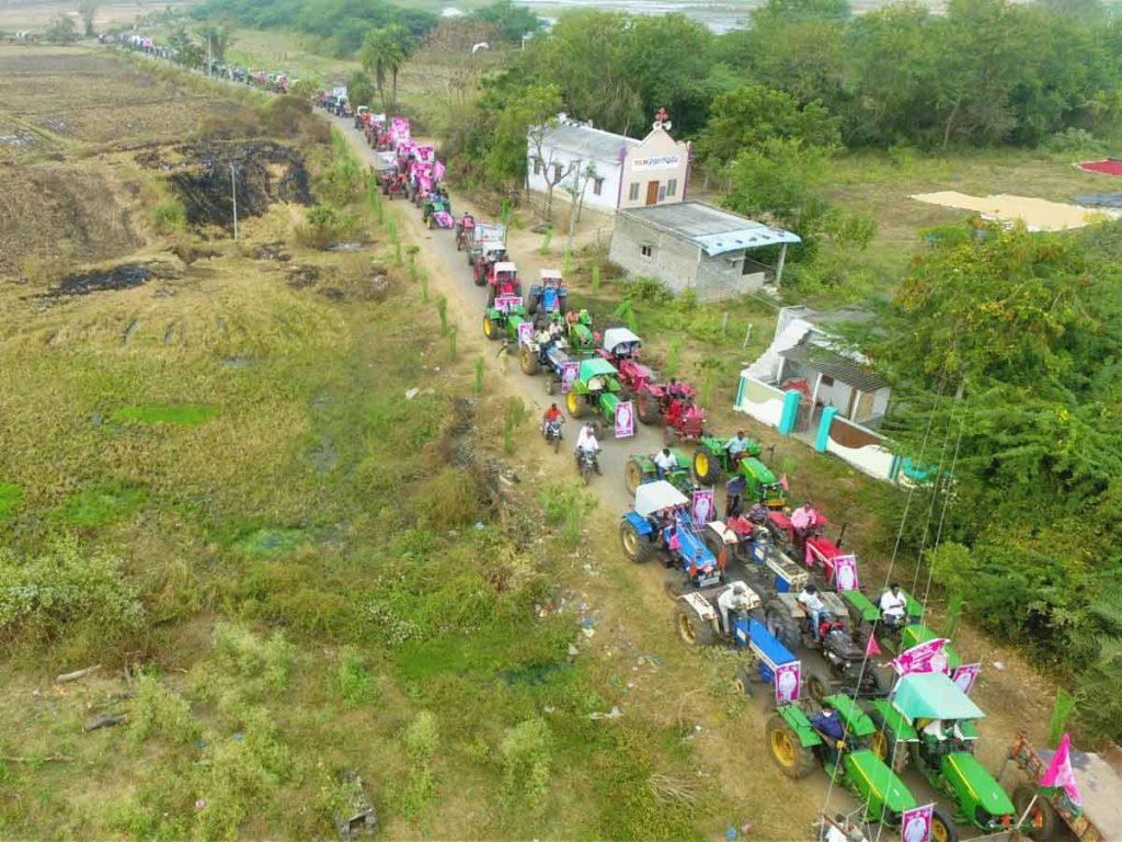 ఖమ్మం, జనవరి 9 (నమస్తే తెలంగాణ ప్రతినిధి) : ఉమ్మడి జిల్లాలో రైతుబంధు వారోత్సవాలు కొనసాగుతున్నాయి. ఐదో రోజు ఆదివారం సంబురాలు మిన్నంటాయి. రైతులు, ప్రజాప్రతినిధులు, టీఆర్ఎస్ నేతలు ఘనంగా రైతుబంధు ఉత్సవాలు నిర్వహించారు. మహిళలు ఇండ్ల ముందు రైతుబంధు ముగ్గులు వేసి తమ అభిమానాన్ని చాటుకున్నారు. రైతులు పొలాల్లో ధాన్యం, కూరగాయలతో రైతుబంధు అక్షరమాల రూపొందించారు. విద్యాశాఖ పాఠశాల విద్యార్థులకు వ్యాసరచన, వక్తృత్వం, చిత్రలేఖన పోటీలు నిర్వహించింది. రఘునాథపాలెం మండలంలోని వేపకుంట్ల, చిమ్మపూడి, వీవీ పాలెంలో జరిగిన వేడుకలో మంత్రి అజయ్కుమార్ పాల్గొన్నారు. మహిళలతో కలిసి నృత్యం చేసి సందడి చేశారు. సీఎం కేసీఆర్ చిత్రపటానికి క్షీరాభిషేకం చేశారు. కొణిజర్ల మండలంలో నిర్వహించిన వేడుకల్లో ఎమ్మెల్యే రాములునాయక్ పాల్గొన్నారు. సత్తుపల్లి నియోజకవర్గంలో జరిగిన ఉత్సవాల్లో ఎమ్మెల్యే సండ్ర వెంకటవీరయ్య, డీసీఎంఎస్ చైర్మన్ రాయల శేషగిరిరావు పాల్గొన్నారు. గ్రామస్తులు నియోజకవర్గవ్యాప్తంగా ఎడ్లబండి, ట్రాక్టర్ల ర్యాలీ నిర్వహించారు. చింతకాని మండలంలో సంబురాల్లో ఖమ్మం జడ్పీ చైర్మన్ లింగాల కమల్రాజు, ఖమ్మం నగరంలోని సమీకృత రైతుబజార్ వేడుకలో ఏఎంసీ చైర్పర్సన్ డీ లక్ష్మీప్రసన్న పాల్గొన్నారు.
