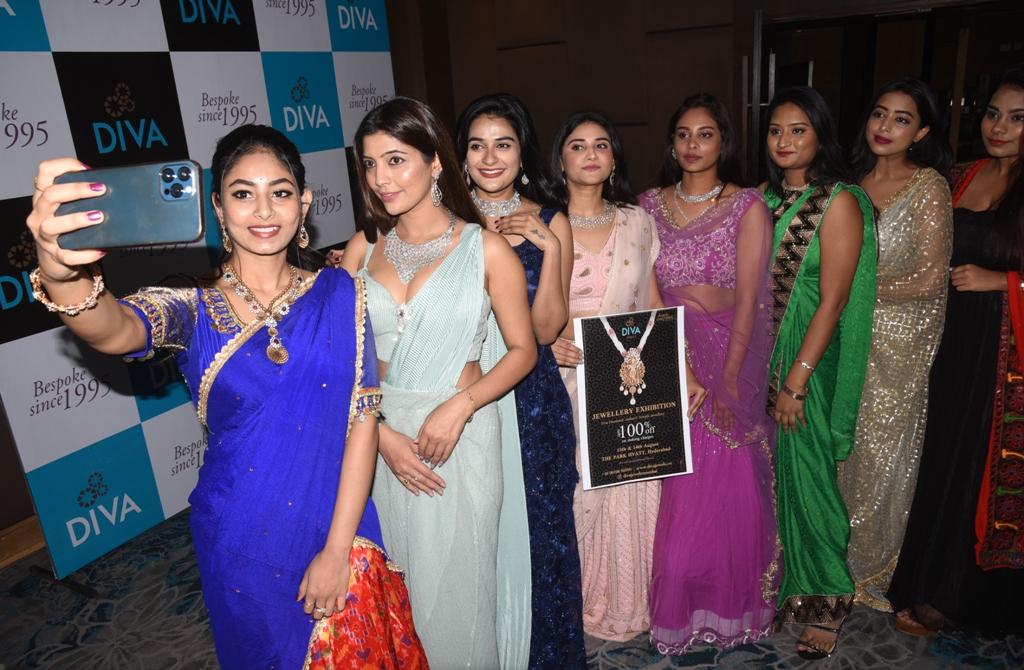 ర్యాంప్ పై క్యాట్ వాక్ చేస్తూ మోడల్స్ తమ అందచందాలతో ఆకట్టుకున్నారుజ ఆగస్ట్ 13న కర్టన్ రైజర్స్ ఆధ్వర్యంలో బంజారాహిల్స్లోని హోటల్ పార్క్ హయాత్లో జరగనున్న దివా జెవెల్స్ ఫ్యాషన్ జువెలరీ షోకు చెందిన బ్రోచర్ను గురువారం మాదాపూర్లోని హెచ్ఐసీసీలో నటీమణులు ప్రేరణ సింగ్, ప్రియా సింగ్, జెన్నీహనీలతో పాటు మోడల్స్ హాజరై నిర్వాహకురాలు రిషి మెహతాతో కలిసి ఆవిష్కరించారు అనంతరం కార్యక్రమానికి విచ్చేసిన నటీమణులు, మోడల్స్ సెల్ఫీలతో సందడి చేశారు.