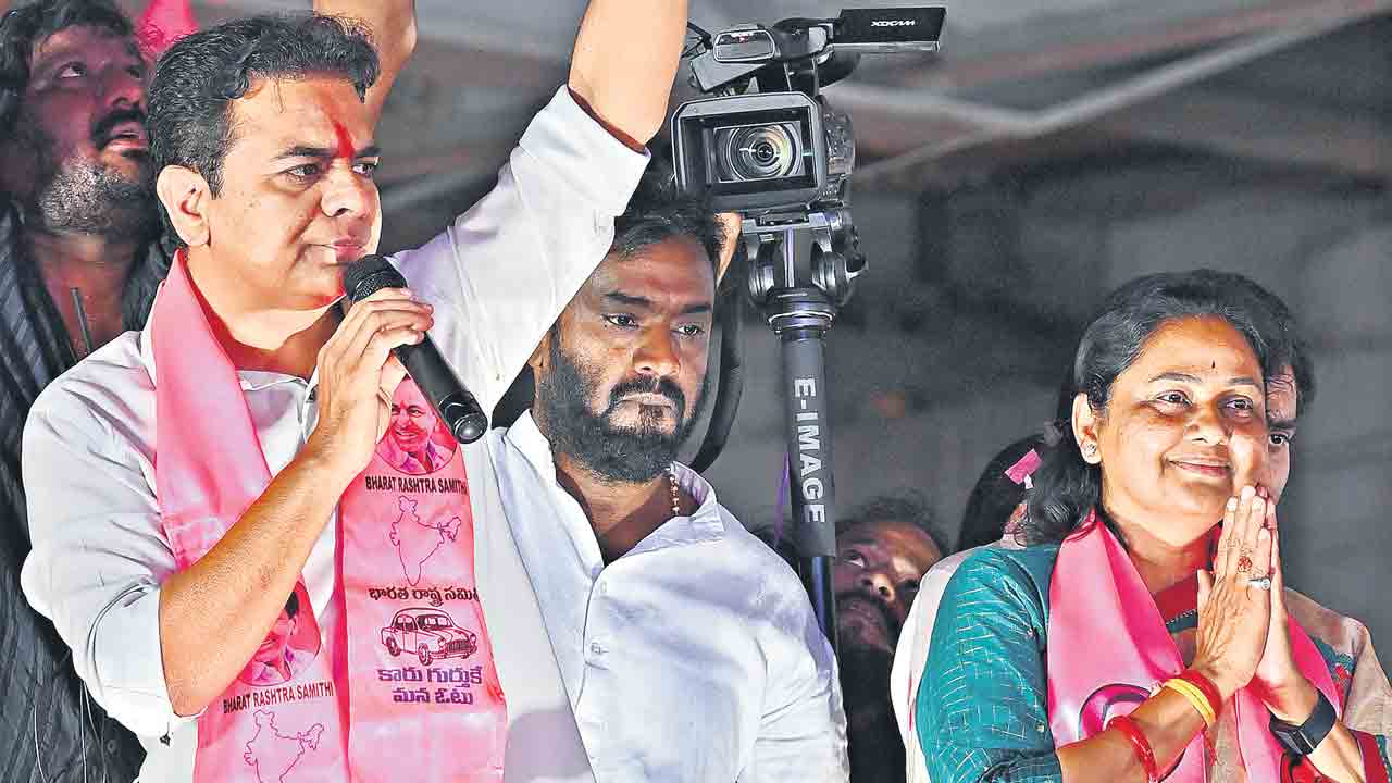 సిటీబ్యూరో, అక్టోబరు 31 (నమస్తే తెలంగాణ) : జూబ్లీహిల్స్ అసెంబ్లీ నియోజకవర్గ ఉపఎన్నికలో బీఆర్ఎస్ గెలుపు ఖరారైందని, కానీ మెజార్టీ ఎంతో తేలాల్సి ఉందని బీఆర్ఎస్ వర్కింగ్ ప్రెసిడెంట్ కల్వకుంట్ల తారక రామారావు అన్నారు. కేసీఆర్ మళ్లీ ముఖ్యమంత్రిగా రావాలంటే..జైత్రయాత్ర ఇక్కడి నుంచే ప్రారంభం కావాలని కేటీఆర్ అన్నారు. నాలుగు లక్షల మంది జూబ్లీహిల్స్ ఓటర్లకు నాలుగు కోట్ల మంది తెలంగాణ ప్రజల గోస తీర్చే అవకాశం వచ్చిందని కేటీఆర్ తెలిపారు. జూబ్లీహిల్స్ ఉప ఎన్నికల ప్రచారంలో భాగంగా శుక్రవారం షేక్పేట డివిజన్లో నిర్వహించిన రోడ్ షోలో కేటీఆర్ పాల్గొని బీఆర్ఎస్ అభ్యర్థి మాగంటి సునీతా గోపీనాథ్కు మద్దతుగా ప్రసంగించారు.