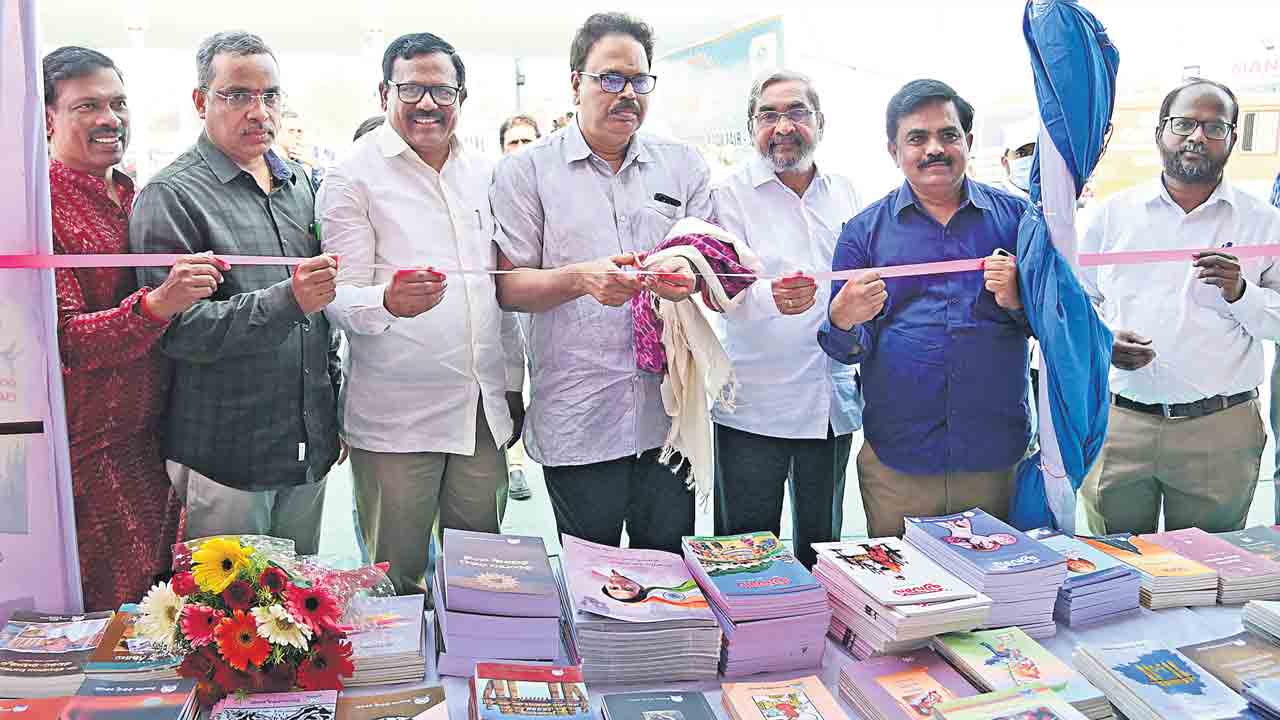 పుస్తక పఠనం ద్వారానే జ్ఞానయోధులుగా నిలుస్తారని ఆయన సూచించారు. పుస్తక ప్రదర్శన ప్రారంభోత్సవం సందర్భంగా అతిథులకు విద్యార్థులు ఘనంగా స్వాగతం పలికారు. కార్యక్రమంలో భాషా, సాంస్కృతిక శాఖ సంచాలకులు మామిడి హరికృష్ణ, పుస్తక ప్రదర్శన ఉపాధ్యక్షుడు కోయ చంద్రమోహన్, కార్యదర్శి శృతికాంత్ భారతి, కోశాధికారి పి. రాజేశ్వర్రావు తదితరులు పాల్గొన్నారు. ఇదిలా ఉంటే తెలం గాణ సాయుధ పోరాట యోధుడు జైని మల్లయ్యగుప్తా అస్తమించడంతో సభాప్రాంగణంలో రెండు నిమిషాలు మౌనం పాటించి నివాళులర్పించారు.