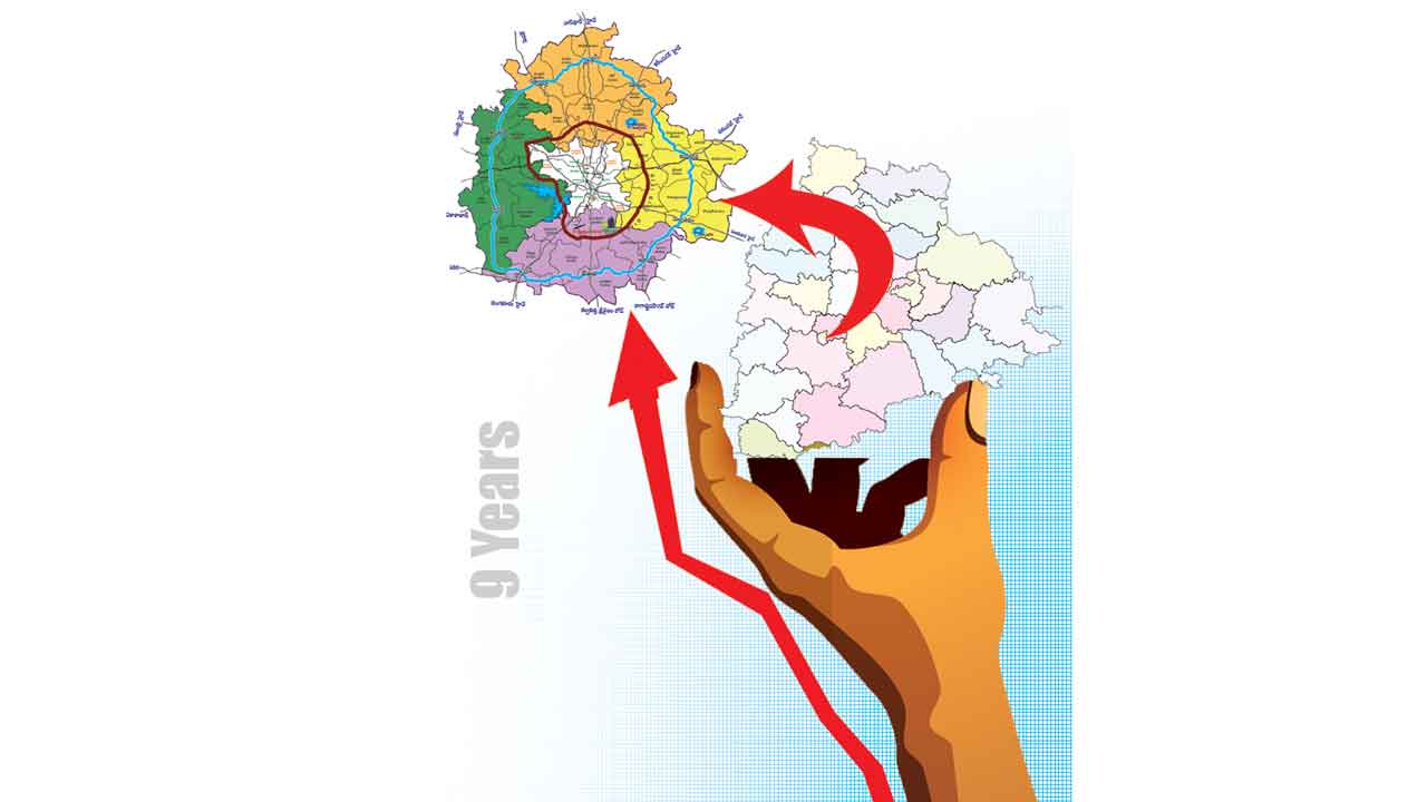 ప్రపంచంలోని విశ్వ నగరాల్లో భౌగోళిక అనుకూలతలు ఉన్న పిడికెడు నగరాల్లో హైదరాబాద్ ఒకటి. ఇలాంటి నగరానికి అంతర్జాతీయ హంగులు అద్దాలంటే చిత్తశుద్ధి కావాలి. అంతకుమించి.. ఇది ‘మా నగరం’ అనే అంకితభావం ఉండాలి. గత పాలకుల్లో అదే లోపించింది. అందుకే 2004 నుంచి 2014 వరకు పదేండ్ల కాలంలో నగరాభివృద్ధికి అప్పటి ప్రభుత్వం రూ.22వేల కోట్ల పైచిలుకు ఖర్చు పెడితే.. కేవలం ఈ తొమ్మిదేళ్లలో తెలంగాణ ప్రభుత్వం ఏకంగా దాదాపు రూ.88వేల కోట్ల వరకు వెచ్చించింది. ఫలితంగానే.. అనేక రంగాల్లో దేశంలోని మెట్రో నగరాలను వెనక్కి నెట్టి భారీ ఎత్తున అంతర్జాతీయ పెట్టుబడులకు కేంద్రంగా మారింది. రాష్ట్ర పురపాలక, ఐటీ శాఖ మంత్రి కేటీఆర్ బుధవారం విడుదల చేసిన 2014-24 పదేండ్ల ప్రగతి నివేదికలో ఇలాంటి ఆసక్తికర అంశాలు ఎన్నో ఉన్నాయి.