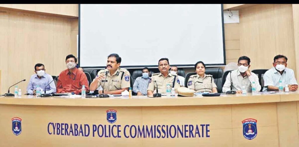 సిటీబ్యూరో, సెప్టెంబర్ 7(నమస్తే తెలంగాణ): సైబరాబాద్ పోలీస్ కమిషనరేట్ పరిధిలో గణేశ్ నవరాత్రులు, నిమజ్జనం ప్రశాంతంగా నిర్వహించేందుకు పోలీసులు అన్ని ప్రభుత్వం శాఖల అధికారులతో సమన్వ యం చేసుకుని పనిచేయాలని సైబరాబాద్ పోలీస్ కమిషనర్ స్టీఫెన్ రవీంద్ర సూచించారు. మంగళవారం గచ్చిబౌలిలోని సైబరాబాద్ పోలీస్ కమిషనర్ కార్యాలయంలో సీపీ స్టీఫెన్ రవీంద్ర జీహెచ్ఎంసీ, రెవెన్యూ, ఆర్అండ్బీ, టీఎస్ఎస్పీడీసీఎల్, ఇరిగేషన్, అగ్నిమాపక శాఖల అధికారులతో సమావేశమయ్యారు. పోలీస్ కమిషనరేట్ పరిధిలోని 36 చెరువుల వద్ద నిమజ్జనానికి కావాల్సిన అన్ని ఏర్పాట్లపై సీపీ సమీక్షించారు. భక్తులకు, విగ్రహాల తరలింపు నిర్వాహకులకు ఎలాంటి ఇబ్బందులు లేకుండా చూడాలని తెలిపారు. పోలీసులు జాగ్రత్తగా ఉండాలని, డయల్ 100 కాల్స్కు వెంటనే స్పందించాలని సూచించారు.