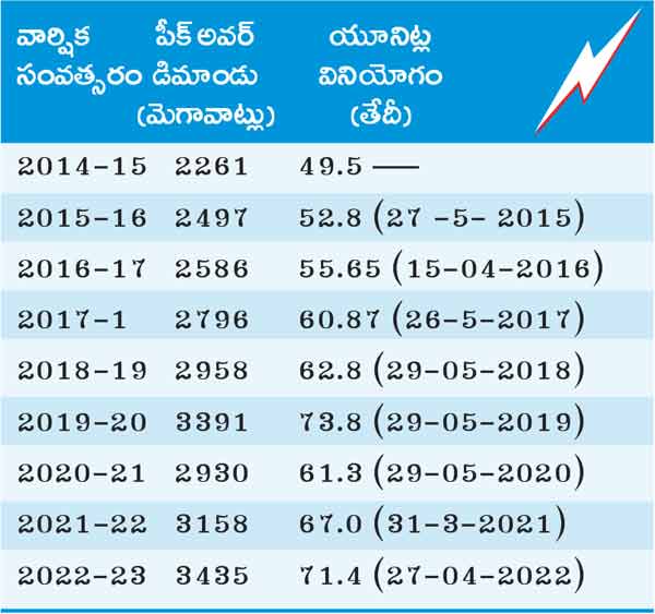 సిటీబ్యూరో, జూన్ 4 (నమస్తే తెలంగాణ) : నిరంతరం నాణ్యమైన విద్యుత్ సరఫరాయే లక్ష్యంగా దక్షిణ తెలంగాణ విద్యుత్ పంపిణీ సంస్థ పనిచేస్తోంది. గ్రేటర్ హైదరాబాద్లో ఈ ఏడాది వేసవిలో ఒక రోజు అత్యధిక విద్యుత్ డిమాండు 7.14 కోట్ల యూనిట్లుగా నమోదైంది. అత్యధిక డిమాండు మే నెలలో కాకుండా ఏప్రిల్ చివరి వారంలో 27వ తేదీన అత్యధిక పీక్ అవర్ డిమాండు 3435 మెగావాట్లుగా నమోదైందని అధికారులు తెలిపారు. ఆ తర్వాత నుంచి మే నెలలో వాతావరణ పరిస్థితుల్లో మార్పులతో గరిష్ట విద్యుత్ డిమాండు అంచనా మించలేదు. అకాల వర్షాలు, తుఫాను ప్రభావంతో రోజు వారి విద్యుత్ వినియోగం తక్కువగానే నమోదైంది. కాగా ప్రత్యేక రాష్ట్రం ఏర్పాటైన తర్వాత ఇప్పటి వరకు గ్రేటర్ పరిధిలో 2019 మే 29న 7.38కోట్ల యూనిట్లు విద్యుత్ వినియోగం జరగ్గా, పీక్ అవర్ డిమాండు 3391గా ఉందని అధికారులు తెలిపారు. మధ్యలో 2020,2021లో కరోనా ప్రభావంతో విద్యుత్ డిమాండు 6.10 కోట్ల యూనిట్లు నుంచి 6.70 కోట్ల యూనిట్లు వినియోగం జరిగింది. కరోనా ప్రభావం పూర్తిగా తగ్గిపోవడం, ఐటీ కార్యాలయాలు తెరుచుకోవడం, పరిస్థితులన్నీ సాధారణంగా మారడంతో 2022లో డిమాండు పెరుగుతుందని, 8 కోట్ల యూనిట్ల వరకు ఉంటుందని అంచనా వేసి అందుకు అనుగుణంగా అధికారులు ఏర్పాట్లు చేశారు. అయినా జూన్ 4వ తేదీ నాటికి అత్యధికంగా 7.14 కోట్ల యూనిట్లుగా నమోదైంది.