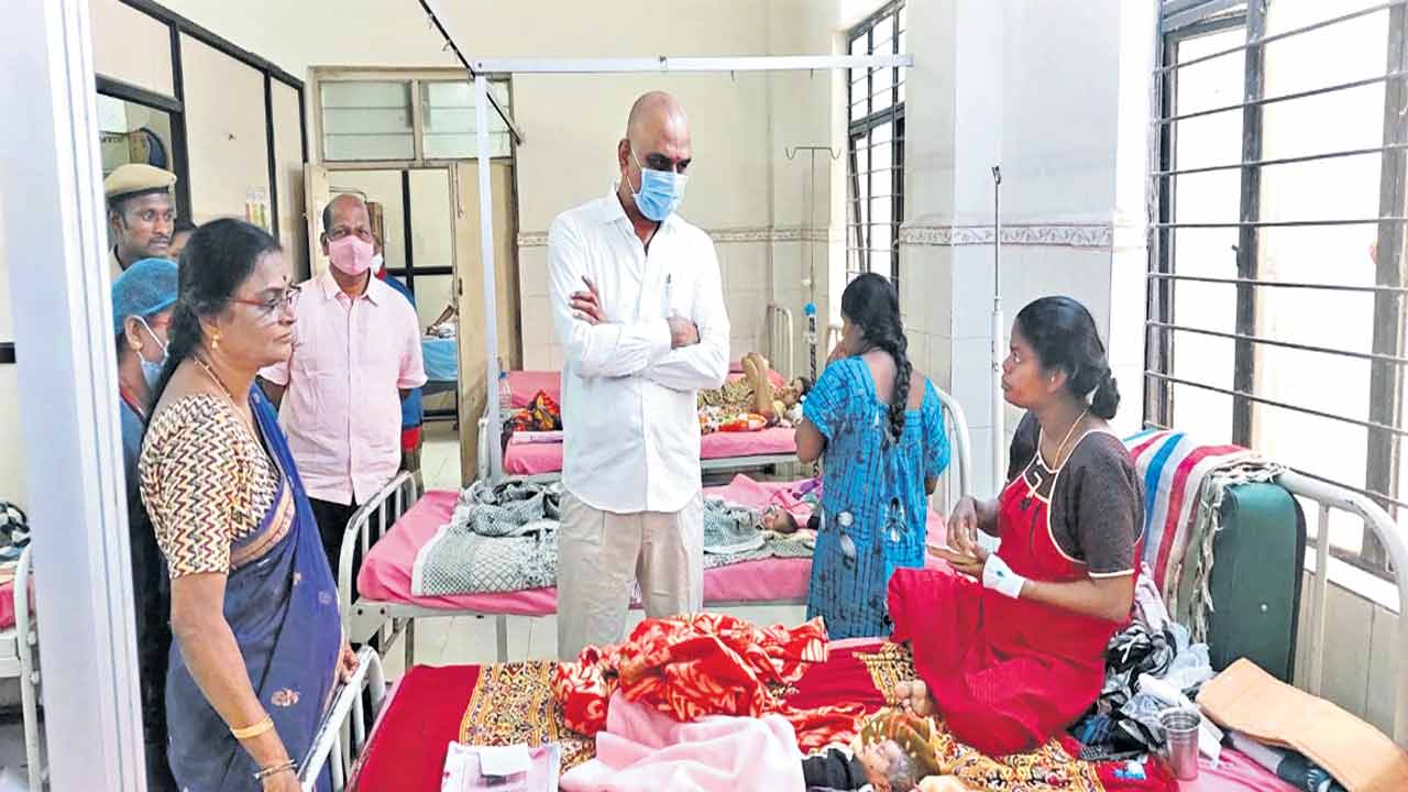 దవాఖానలో చికిత్స పొందుతున్న బాలింతలు తమ చిన్నారులకు ప్రైవేట్ మందులను వాడటాన్ని గమనించి మంత్రి సీరియస్ అయ్యారు. ప్రభుత్వం అన్ని విధాలుగా వైద్య సేవలను అందిస్తుంటే పేద రోగులకు ప్రైవేట్ మెడికల్ షాపుల నుంచి తీసుకువచ్చేందుకు ఎందుకు రాస్తున్నారని ప్రశ్నించారు. ఈ మందులను రాసిన వైద్యులపై తీవ్ర ఆగ్రహం వ్యక్తం చేశారు. వారిని పిలిచి చర్యలు తీసుకోవాల్సిందిగా దవాఖాన సూపరింటెండెంట్ డాక్టర్ కె రాజ్యలక్ష్మికి సూచించారు. ఇక మీదట ఇటువంటి చర్యలను ఎట్టి పరిస్థితిలో సహించేది లేదన్నారు. ప్రభుత్వం రోగులకు అన్ని రకాలుగా వైద్య సేవలను అందించాల నే ధ్యేయంతో రూ. 500 కోట్ల నిధులను విడుదల చేసిందన్నారు. ఇద్దరు బాలింతలకు తమ చిన్నారులకు అవసరమయ్యే మందులను బయటి నుండి తెచ్చుకో వాలని రాసినందుకు ఇద్దరు పీడియాట్రిషన్ డాక్టర్లపై ఆగ్రహం వ్యక్తం చేశారు. అంతేకాకుండా విధులలో నిర్లక్ష్యంగా వ్యవహరించిన స్టాఫ్నర్సును డీఎంఈకి అటాచ్ చేయాలని ఆదేశించారు. పరీక్షలు బయటకు రాసిన మరో పీజీ డాక్టర్ను తీవ్రంగా మందలించారు.
