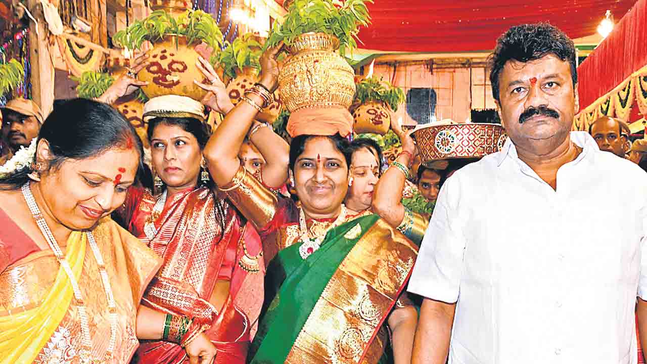 సిటీబ్యూరో, జూలై 17 (నమస్తే తెలంగాణ): ఉజ్జయినీ మహంకాళి బోనాల సందర్భంగా ఎమ్మెల్సీ కల్వకుంట్ల కవిత ఆదివారం అమ్మవారికి మంత్రి తలసాని శ్రీనివాస్యాదవ్ ఆధ్వర్యంలో బంగారు బోనం సమర్పించారు. మోండా మారెట్ డివిజన్ ఆదయ్యనగర్ కమాన్ నుంచి ఎమ్మెల్సీ కవిత బంగారు బోనం ఎత్తుకొని మంత్రి తలసాని దంపతులతో కలిసి అమ్మవారికి సమర్పించి పూజలు నిర్వహించారు. ఈ కార్యక్రమంలో ఎమ్మెల్యే బేతి సుభాష్రెడ్డి, డిప్యూటీ మేయర్ శ్రీలతశోభన్రెడ్డి, కార్పొరేటర్ మహేశ్వరి, మాజీ కార్పొరేటర్లు అత్తిలి అరుణగౌడ్, నామన శేషుకుమారి, సికింద్రాబాద్ పార్లమెంట్ నియోజకవర్గ టీఆర్ఎస్ ఇన్చార్జి తలసాని సాయికిరణ్యాదవ్ తదితరులు పాల్గొన్నారు.