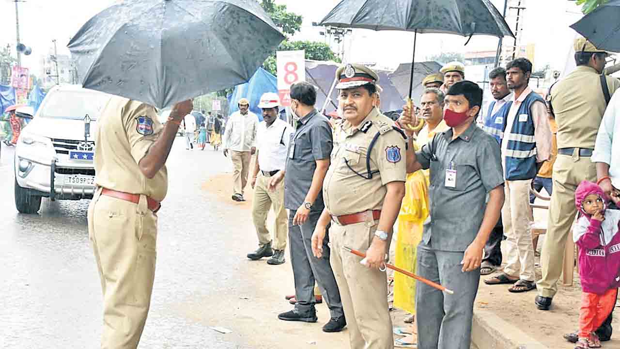 గణేశ్ నిమజ్జనోత్సవాలకు పటిష్ట బందోబస్తు ఏర్పాటు చేసినట్లు నగర పోలీస్ కమిషనర్ సీవీ ఆనంద్ వెల్లడించారు. కమాండ్ అండ్ కంట్రోల్ సెంటర్ నుంచి అన్ని శాఖలను సమన్వయం చేసుకుంటూ క్షేత్ర స్థాయి పరిశీలించినట్లు వెల్లడించారు. భక్తులకు ఎలాంటి అసౌకర్యాలు కలుగకుండా తగిన ఏర్పాట్లు చేశామన్నారు. షీ టీమ్స్ ప్రత్యేక బృందాలు నిఘా పెట్టాయని, అనేక మంది ఆకతాయిలు పట్టుబడ్డారని చెప్పారు. కాగా, సీపీ ఆనంద్ ఖైరతాబాద్ మహాగణపతి వద్ద ప్రత్యేక పూజల్లో పాల్గొన్నారు. ఇక రాచకొండ పోలీస్ కమిషనరేట్ పరిధిలో వివిధ ప్రాంతాల్లోని నిమజ్జన కేంద్రాలను సీపీ మహేశ్భగవత్ సందర్శించారు. అన్ని శాఖల సమన్వయంతో పాటు ఆరు వేల మంది బందోబస్తును ఏర్పాటు చేసినట్లు చెప్పారు. అలాగే పలు చెరువుల వద్ద ఏర్పాట్లు, నిమజ్జనం సాగుతున్న తీరును కమిషనర్ స్టీఫెన్ రవీంద్ర క్షేత్రస్థాయిలో పరిశీలించారు. శామీర్పేట్, హస్మత్పేట్, సూరారం, కూకట్పల్లి, ఐడీఎల్ చెరువులను ఆయన సందర్శించారు.