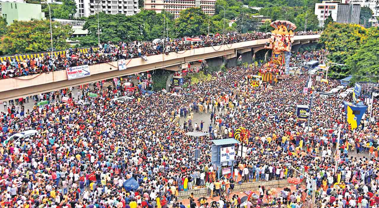 నవరాత్రులపాటు ఆబాలగోపాలాన్ని ఉర్రూతలూగించిన గణనాథుడు అనంతచతుర్దశి పర్వదినాన గంగమ్మ ఒడికి చేరుకున్నాడు. భక్తజనులు జయజయధ్వానాలు పలుకుతుండగా విఘ్నేశ్వరుడు ఊరేగుతూ మంగళనీరాజనాలు అందుకున్నాడు. బొజ్జగణపయ్యకు లక్షలాదిమంది భక్తులు దారిపొడవునా భజనలు చేసి ధూపదీప నైవేద్యాలు సమర్పించి సాగనంపారు. ఉత్సవకమిటీ చరిత్రలో తొలిసారి 50 అడుగుల ఎత్తున ప్రతిష్ఠితమైన ఖైరతాబాద్ మట్టి మహాగణపతిని సాయంత్రం 7 గంటలకు నిమజ్జనం చేశారు.