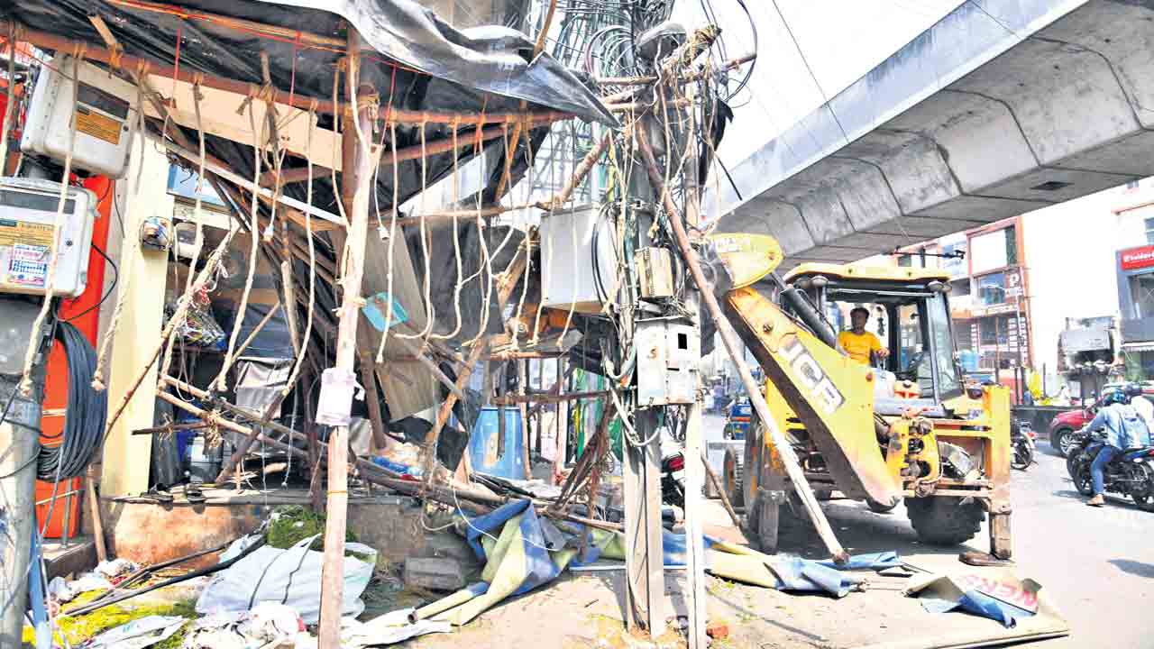 ప్రజాపాలన అంటూ.. చెప్పుకొనే కాంగ్రెస్..మరోసారి తన బుల్డోజర్ మార్క్ను చూపించింది. పేదల జీవనోపాధిపై గర్జించింది. కాళ్లావేళ్లా పడ్డా కనికరించలేదు.. తమ జీవనాధారాన్ని ‘నేలమట్టం’ చేయొద్దని వేడుకున్నా.. ‘కష్టం చేసుకొని బతికెటోళ్లం.. మాపైనే మీ ప్రతాపమా.. ఇప్పుడు మేమెలా జీవించేది’.. అంటూ.. బాధితులు కన్నీటిపర్యంతమైనా.. మనసు కరగలేదు. శనివారం నగరంలో ఏకకాలంలో 798 చిరు వ్యాపారుల దుకాణాలను ఫుట్పాత్ ఆక్రమణల పేరుతో బల్దియా అధికారులు దమనకాండ సాగించారు. పేదలను రోడ్డు పాలు చేశారు. స్పెషల్ డ్రైవ్ పేరిట వందల సంఖ్యలో చిరు దుకాణాలను కూల్చివేశారు. కష్టపడి పనిచేసుకుంటూ.. జీవిస్తున్న వారిపై దయ చూపాలని బాధితులు దండం పెట్టినా..వినలేదు.. బుల్డోజర్ మోత ఆగలేదు.