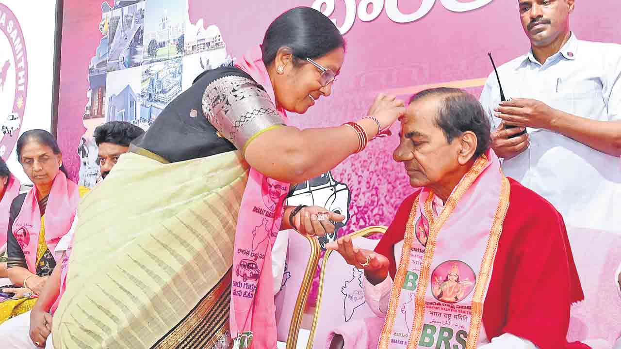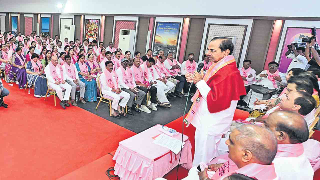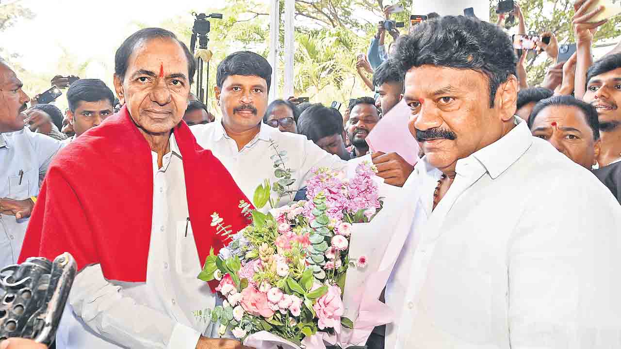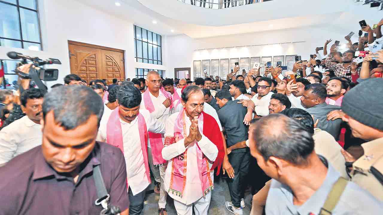 బీఆర్ఎస్ అధినేత కేసీఆర్ తెలంగాణ భవన్కు చేరుకోవడంతో ఆ పార్టీ శ్రేణుల్లో ఉత్సాహం ఉప్పొంగింది. ఆదివారం బీఆర్ఎస్ విస్తృతస్థాయి సమావేశంలో పాల్గొన్న కేసీఆర్ను చూసేందుకు బీఆర్ఎస్ నేతలు, కార్యకర్తలు పోటీపడ్డారు.కేసీఆర్ రాకతో తెలంగాణ భవన్ పరిసర ప్రాంతాలు కోలాహలంగా మారాయి. ఎటు చూసినా జనసందోహం కనిపించింది.