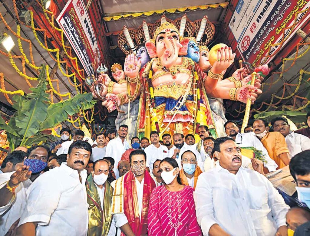 మంత్రుల ప్రత్యేక పూజలు: ఖైరతాబాద్ శ్రీపంచముఖ రుద్ర మహాగణపతిని పురపాలక,ఐటీశాఖ మంత్రి కేటీఆర్, కార్మిక మంత్రి చామకూర మల్లారెడ్డి, హోంశాఖ మంత్రి మహమూద్ అలీ దర్శించుకున్నారు. ఈ సందర్భంగా మంత్రులకు వినాయకుడి ప్రతిమను ఉత్సవ కమిటీ బహూకరించి ఘనంగా సత్కరించింది.