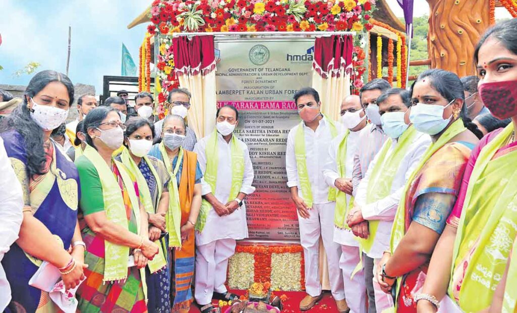 రంగారెడ్డి, జూలై 1, (నమస్తే తెలంగాణ): హరితహారం కార్యక్రమంలో భాగంగా ఇప్పటివరకు ఏడేండ్లలో రూ.5900 కోట్లను ఖర్చు చేసి 220 కోట్ల మొక్కలను నాటినట్లు మంత్రి కేటీఆర్ వెల్లడించారు. పట్టణ ప్రాంతాల్లోనూ పచ్చదనాన్ని పెంపొందించేందుకు అర్బన్ ఫారెస్ట్ పార్కులను అభివృద్ధి చేస్తున్నట్లు చెప్పారు. గురువారం జిల్లాలోని పెద్ద అంబర్పేట కలాన్లో ఏర్పాటు చేసిన అర్బన్ ఫారెస్ట్ పార్కును అటవీ శాఖ మంత్రి ఇంద్రకరణ్ రెడ్డితో కలిసి ప్రారంభించారు. మొక్కను నాటి ఏడో విడత హరితహారం కార్యక్రమాన్ని ప్రారంభించారు.