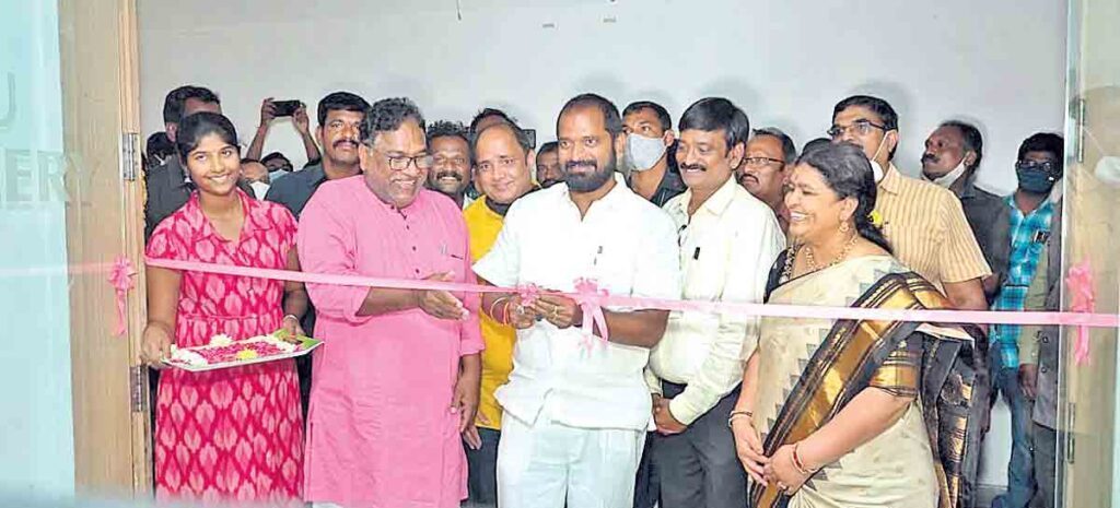 సుల్తాన్బజార్, సెప్టెంబర్ 9: కళాకారుడి కుంచె నుంచి జాలువారే చిత్రాలు మానవాళికి మంచి సందేశాన్ని ఇస్తాయని మంత్రి వి.శ్రీనివాస్ గౌడ్ అన్నారు. మాసబ్ట్యాంక్లోని జవహర్లాల్ నెహ్రూ ఆర్కిటెక్చర్ అండ్ ఫైన్ ఆర్ట్స్ యూనివర్సిటీలోని నెహ్రూ ఆర్ట్ గ్యాలరీలో కళాకారుడు కూరేళ్ల శ్రీనివాస్ చిత్రముఖ 108 వాటర్ కలర్ పోట్రెయిట్స్ ప్రదర్శన నిర్వహించారు. ఈ ప్రదర్శనను గురువారం మంత్రి శ్రీనివాస్గౌడ్, ఎమ్మెల్సీ గోరటి వెంకన్న, హైదరాబాద్ ఆర్ట్ సొసైటీ అధ్యక్షుడు ఎంవీ. రమణారెడ్డి, జేఎన్ఏఎఫ్ఏయూ కాలేజ్ ఆఫ్ ఫైన్ ఆర్ట్స్ ప్రిన్సిపాల్ బి.శ్రీనివాస్రెడ్డి, ఆర్టిస్ట్ కూరేళ్ల శ్రీనివాస్ ప్రారంభించారు.