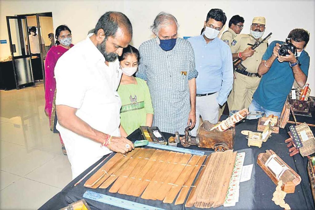 హఫీజ్పేట్, ఆగస్టు14, మనిషి నాగరికత రూపాంతరం చెందిన విధానాన్ని కళారూపాల ద్వారా భావితరాలకు తెలియజేసే ప్రయత్నం గొప్పదని రాష్ట్ర ఎక్సైజ్, పర్యాటక శాఖ మంత్రి శ్రీనివాస్గౌడ్ అన్నారు. శనివారం మాదాపూర్లోని చిత్రమయి ఆర్ట్గ్యాలరీలో ఆద్యకళ ఆధ్వర్యంలో ఏర్పాటు చేసిన కళారూపాల ప్రదర్శనను ఆయన సందర్శించారు. ఈ సందర్భంగా మంత్రి మాట్లాడుతూ ఆదివాసులు, గిరిజన జాతుల అభివృద్ధిలో చోటుచేసుకున్న పరిణామాలను కళ్లకు కట్టినట్లు విశదీకరించేందుకు ఆద్యకళ ఒకవేదిక అయ్యిందన్నారు. అలాంటి కళారూపాలను వెలికితీయడంలో తెలుగు విశ్వవిద్యాలయం మాజీ ఉపకులపతి ప్రొ. తిరుమలరావు చేసిన కృషి వెలకట్టలేనిదని కొనియాడారు. ప్రదర్శనలో ఉంచిన పరికరాలు, సంగీతవాయిద్యాలు, దేవతామూర్తుల విగ్రహాలను పరిశీలించారు. కార్యక్రమంలో ప్రొ. తిరుమలరావు పాల్గొన్నారు.