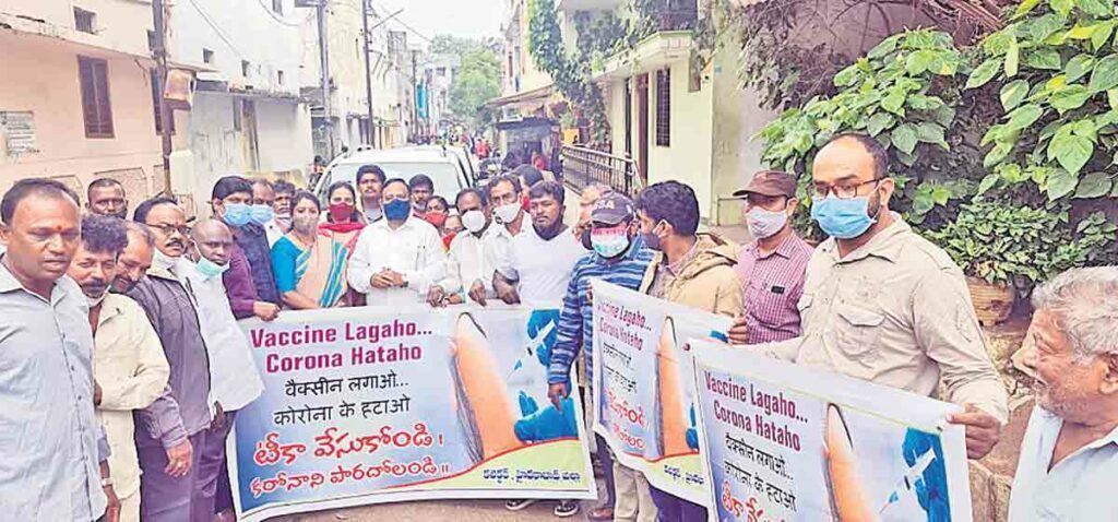 కరోనా నియంత్రణలో వ్యాక్సిన్ పాత్ర ఎంతో కీలకమని అడ్డగుట్ట కార్పొరేటర్ లింగాని ప్రసన్న అన్నారు. ప్రజలందరూ తప్పనిసరిగా వ్యాక్సిన్ వేయించుకోవాలని సూచిస్తూ రెవెన్యూ అధికారులు, పార్టీశ్రేణులతో కలిసి ఆమె డివిజన్లోని పలు ప్రాంతాల్లో పాదయాత్ర, బైక్ ర్యాలీని నిర్వహించారు. ఈ సందర్భంగా ఆమె మాట్లాడుతూ… అందరికి వ్యాక్సిన్ వేయించాలనే లక్ష్యంతో ప్రభుత్వం పనిచేస్తుందన్నారు. కార్యక్రమంలో గ్రంథాలయ డైరెక్టర్ లింగాని శ్రీనివాస్, రెవెన్యూ అధికారులు సునీల్, రమేష్, పార్టీశ్రేణులు నక్కమధు, మనోహర్, శ్రీనివాస్ గౌడ్, పొన్నాల రాజు పాల్గొన్నారు.