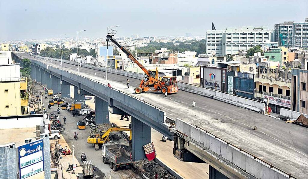 సిటీబ్యూరో, నవంబరు9 (నమస్తే తెలంగాణ): హైదరాబాద్ నగరంలో పెరుగుతున్న జనాభాకు అనుగుణంగా మెరుగైన రవాణా సౌకర్యాన్ని కల్పించాలనే ఉద్దేశంతో రాష్ట్ర ప్రభుత్వం హైదరాబాద్ మహానగర పాలక సంస్థ ఆధ్వర్యంలో రోడ్ల అభివృద్ధికి వ్యూహాత్మక రహదారుల అభివృద్ధి కార్యక్రమం ద్వారా నగరంలో ట్రాఫిక్ ఇబ్బందులను అధిగమించేందుకు ఫె్లై ఓవర్లు, అండర్ పాస్ల నిర్మాణాలు చేపట్టారు. ఈ నేపథ్యంలో మిధాని జంక్షన్ నుంచి ఒవైసీ దవాఖాన జంక్షన్ వరకు ఒవైసీ దవాఖాన జంక్షన్ వద్ద రూ. 63కోట్ల అంచనా వ్యయంతో సుమారు 1.40 కిలోమీటర్ల దూరం గల ఫె్లై ఓవర్ నిర్మాణ పనులు తుది దశకు చేరుకున్నాయి. 12మీటర్ల వెడల్పు, యూని డైరెక్షన్లో మూడు లైన్ల ఫె్లై ఓవర్ డిసెంబర్ చివరి వారంలో ప్రారంభించేందుకు సన్నాహాలు చేస్తున్నట్లు అధికారులు పేర్కొన్నారు. ఫె్లై ఓవర్ బ్రిడ్జి కింది భాగంలో బీటీ రోడ్డు పనులు పురోగతిలో ఉందని, ఏ1 ర్యాంపు సీ.ఆర్. సీ.పీ పనులు పూర్తి కాగా ఏ2 ర్యాంపు పనులు పురోగతిలో ఉన్నాయని పేర్కొన్నారు.