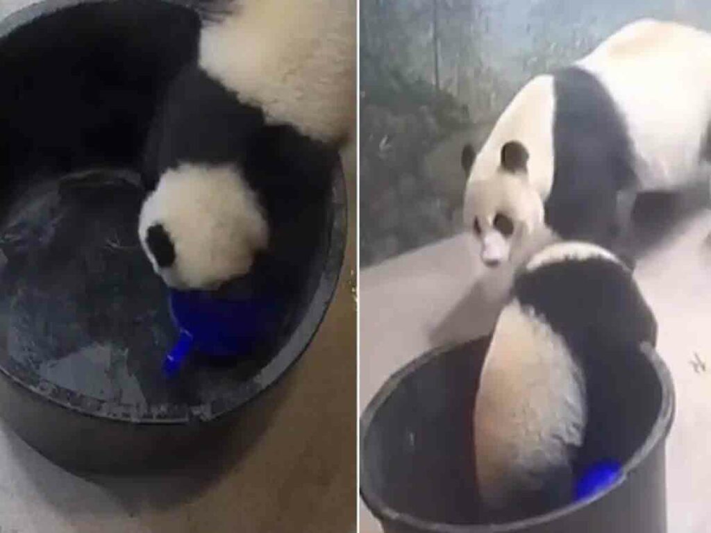 వాషింగ్టన్: ఒక పాండా పిల్ల తన చేష్టలతో నెటిజన్లను ఆకట్టుకున్నది. ఒక బంతిని కాళ్లపై చాలా సేపు ఆడింది. అనంతరం ఆ బాల్ ఒక టబ్లో పడటంతో దాని కోసం అది కూడా అందులోకి దిగింది. అయితే బయటకు రాలేక ఇబ్బంది పడింది. అంతలో అక్కడకు వచ్చిన తల్లి పాండా తన పిల్లను నోటితో పట్టుకుని లాగింది. దీంతో ఆ టబ్ బోర్లా పడటంతో పాండా పిల్ల బయటకు వచ్చింది.