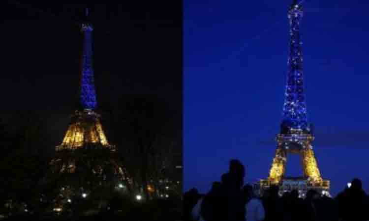 ఉక్రెయిన్పై రష్యా దాడిని అమెరికాతోపాటు ఐరోపా యూనియన్ ఖండించింది. ఐరోపాలో బ్రిటన్ తర్వాత మరో ముఖ్య దేశమైన ఫ్రాన్స్, ఉక్రెయిన్కు తన సంఘీభావాన్ని వినూత్నంగా ప్రకటించింది. రాజధాని పారిస్లోని ప్రసిద్ధ ఈఫిల్ టవర్ ఉక్రెయిన్ జాతీయ జెండా రంగులతో కాంతులీనింది. ఉక్రెయిన్ ప్రజలకు సంఘీభావంగా నీలం, పసుపు రంగుల్లో ఈఫిల్ టవర్ వెలిగిపోయిందని పారిస్ మేయర్ అన్నే హిడాల్గో తెలిపారు. ఆ సమయంలో అక్కడున్న సందర్శకులు ఉక్రెయిన్ జాతీయ జెండా రంగుల్లో మెరిసిన ఈఫిల్ టవర్ను తిలకించి పులకించారు. ఫోటోలు, వీడియోలు తీసి సోషల్ మీడియాలో షేర్ చేశారు.
